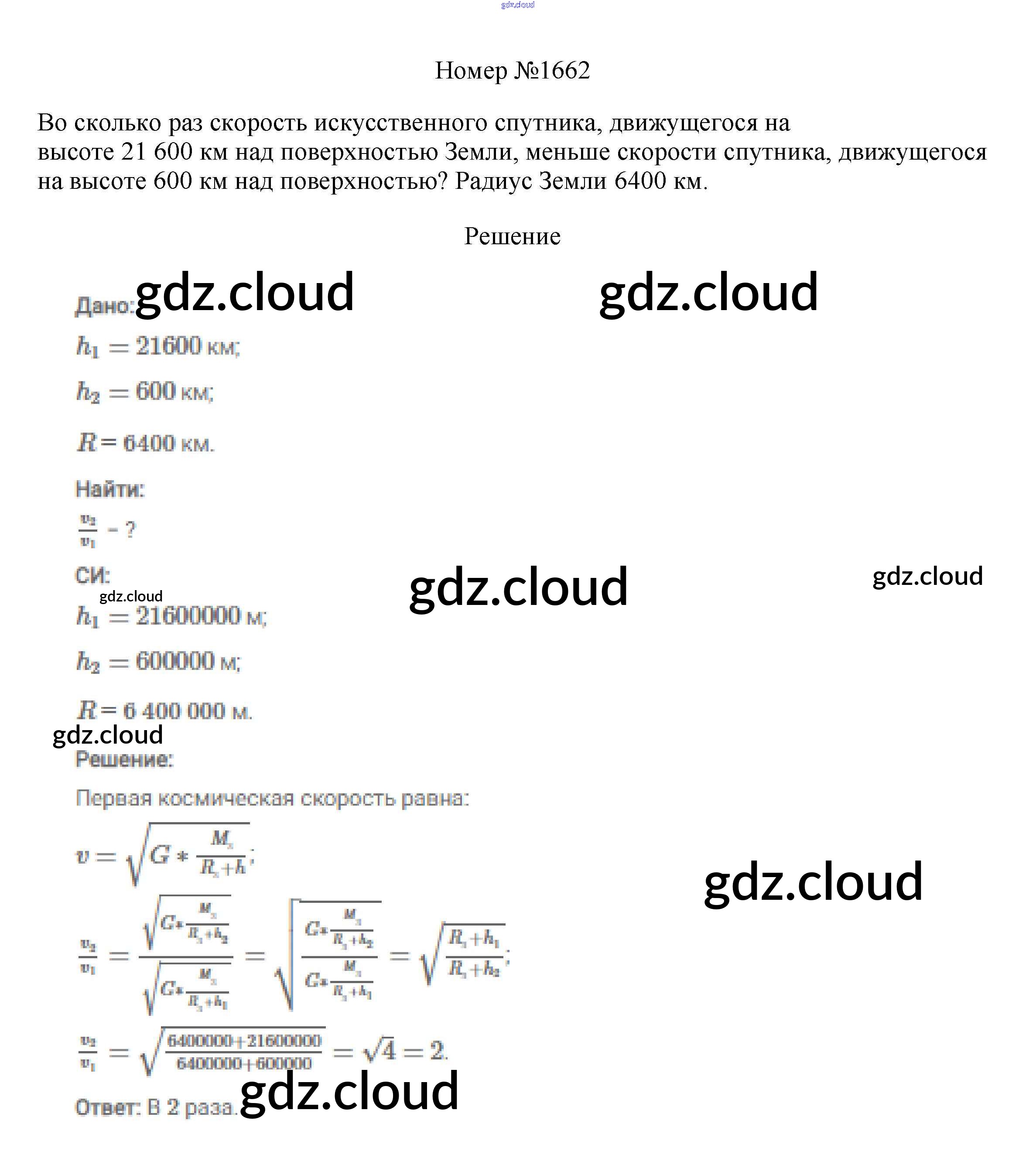 Ответ на задание 1662 Сборник вопросов и задач Физика за 7, 8, 9 (седьмой, восьмой, девятый) класс Марон, Позойский Вертикаль 2013