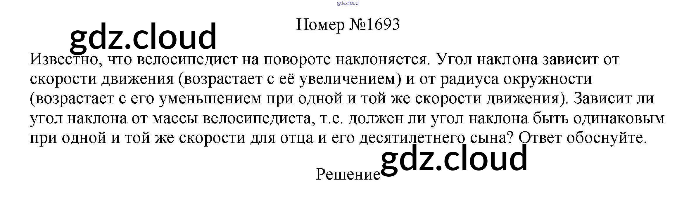 Ответ на задание 1693 Сборник вопросов и задач Физика за 7, 8, 9 (седьмой, восьмой, девятый) класс Марон, Позойский Вертикаль 2013
