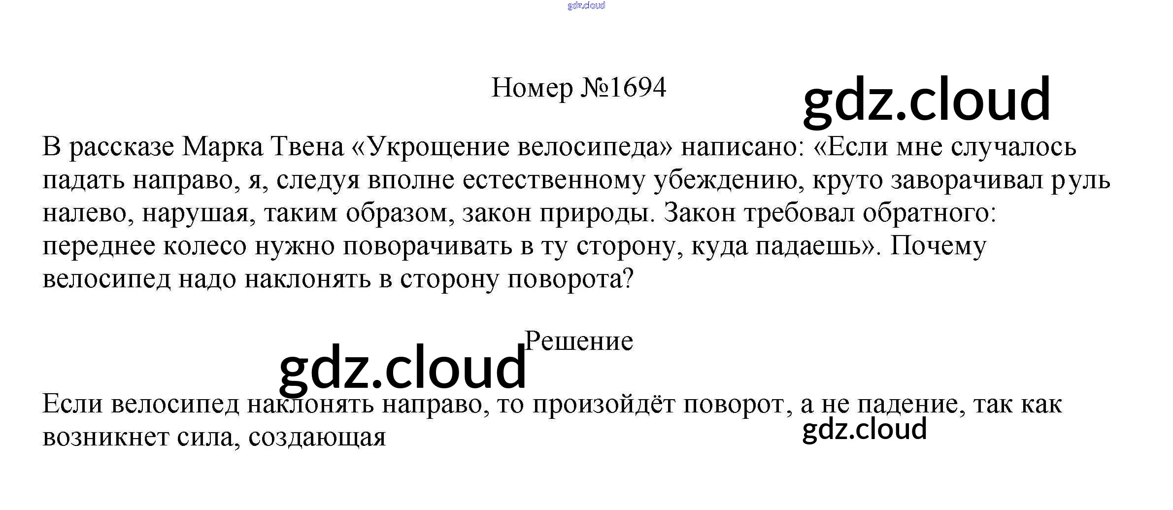 Ответ на задание 1694 Сборник вопросов и задач Физика за 7, 8, 9 (седьмой, восьмой, девятый) класс Марон, Позойский Вертикаль 2013