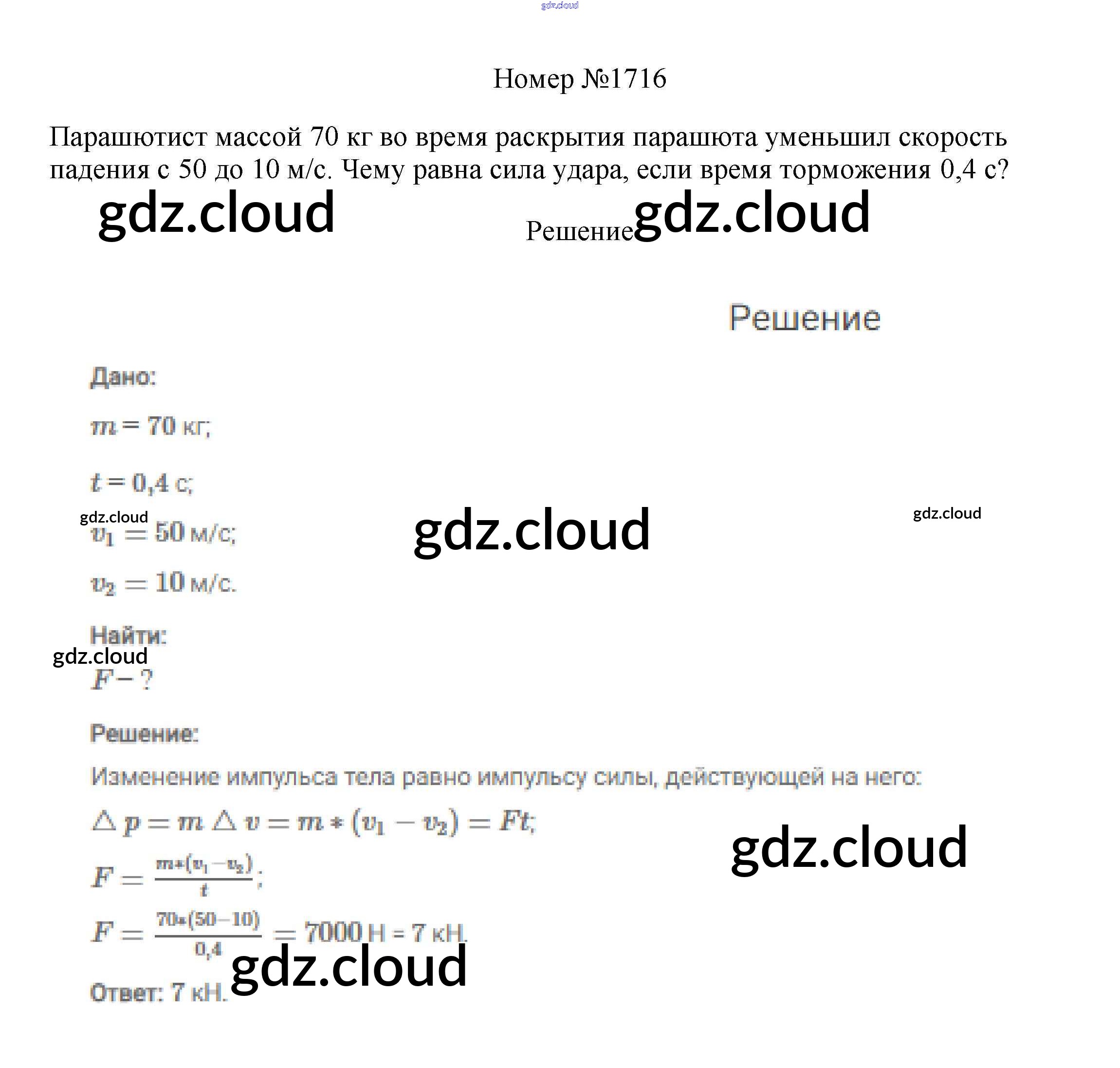 Ответ на задание 1716 Сборник вопросов и задач Физика за 7, 8, 9 (седьмой, восьмой, девятый) класс Марон, Позойский Вертикаль 2013