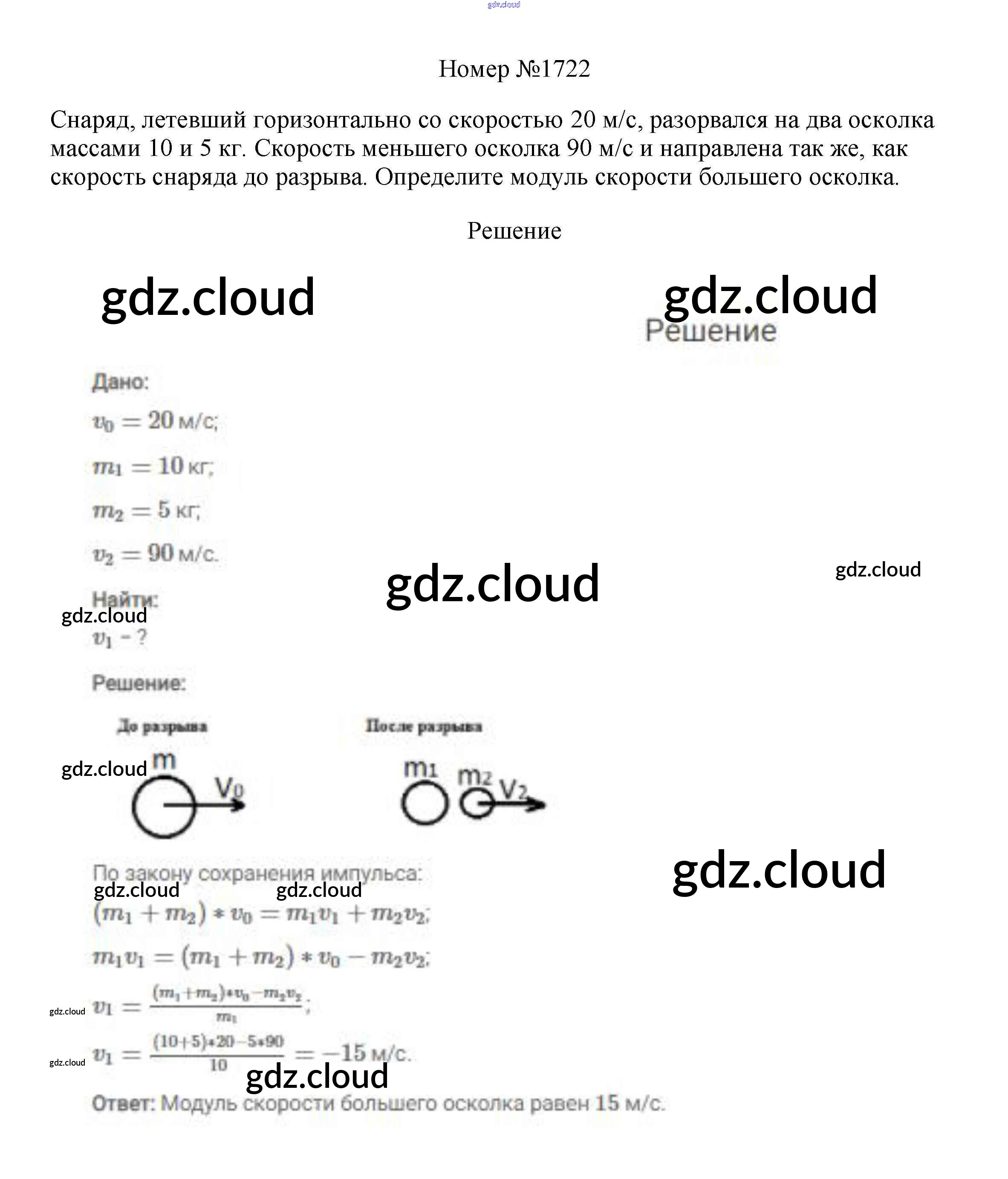 Ответ на задание 1722 Сборник вопросов и задач Физика за 7, 8, 9 (седьмой, восьмой, девятый) класс Марон, Позойский Вертикаль 2013