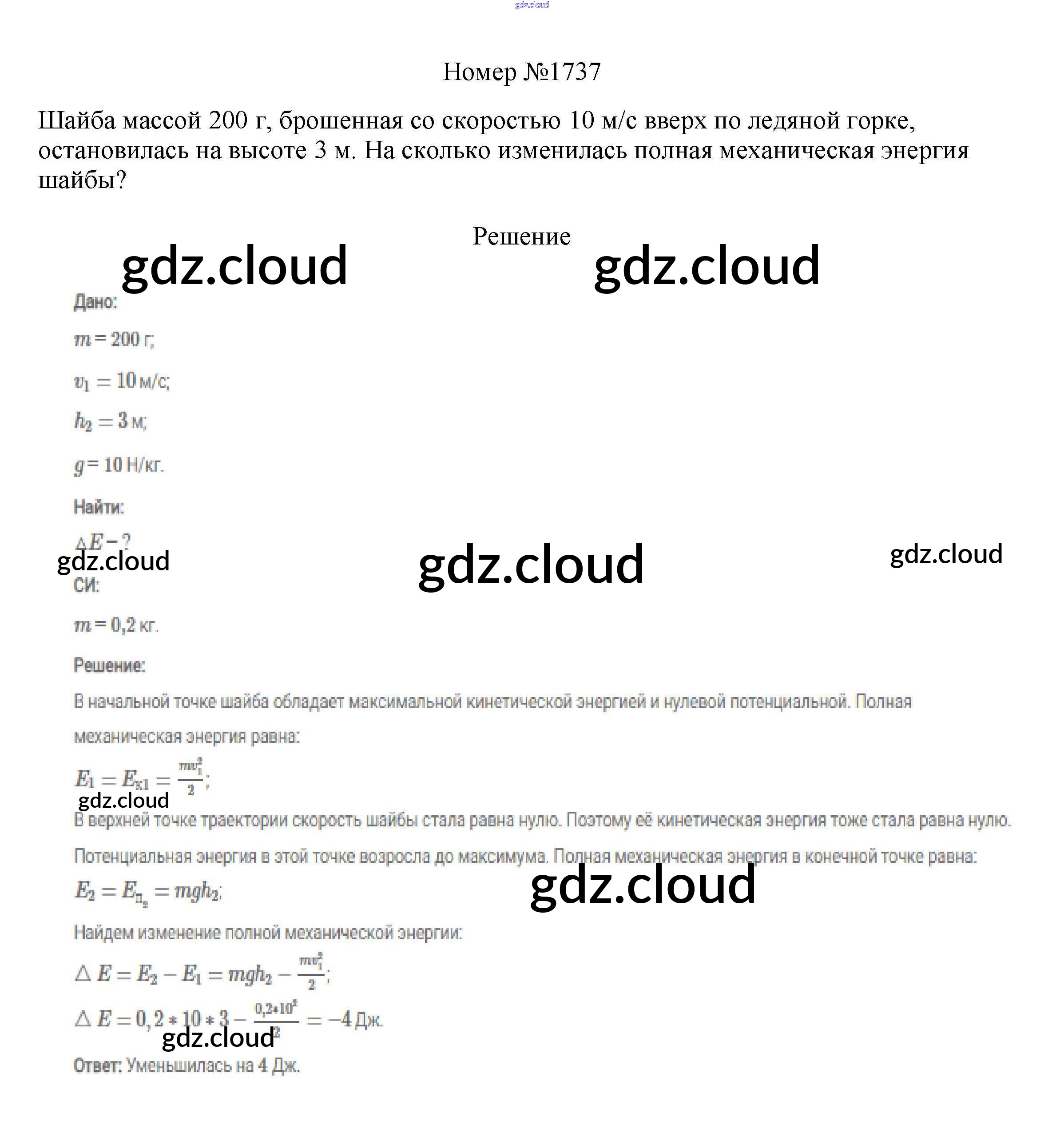 Ответ на задание 1737 Сборник вопросов и задач Физика за 7, 8, 9 (седьмой, восьмой, девятый) класс Марон, Позойский Вертикаль 2013