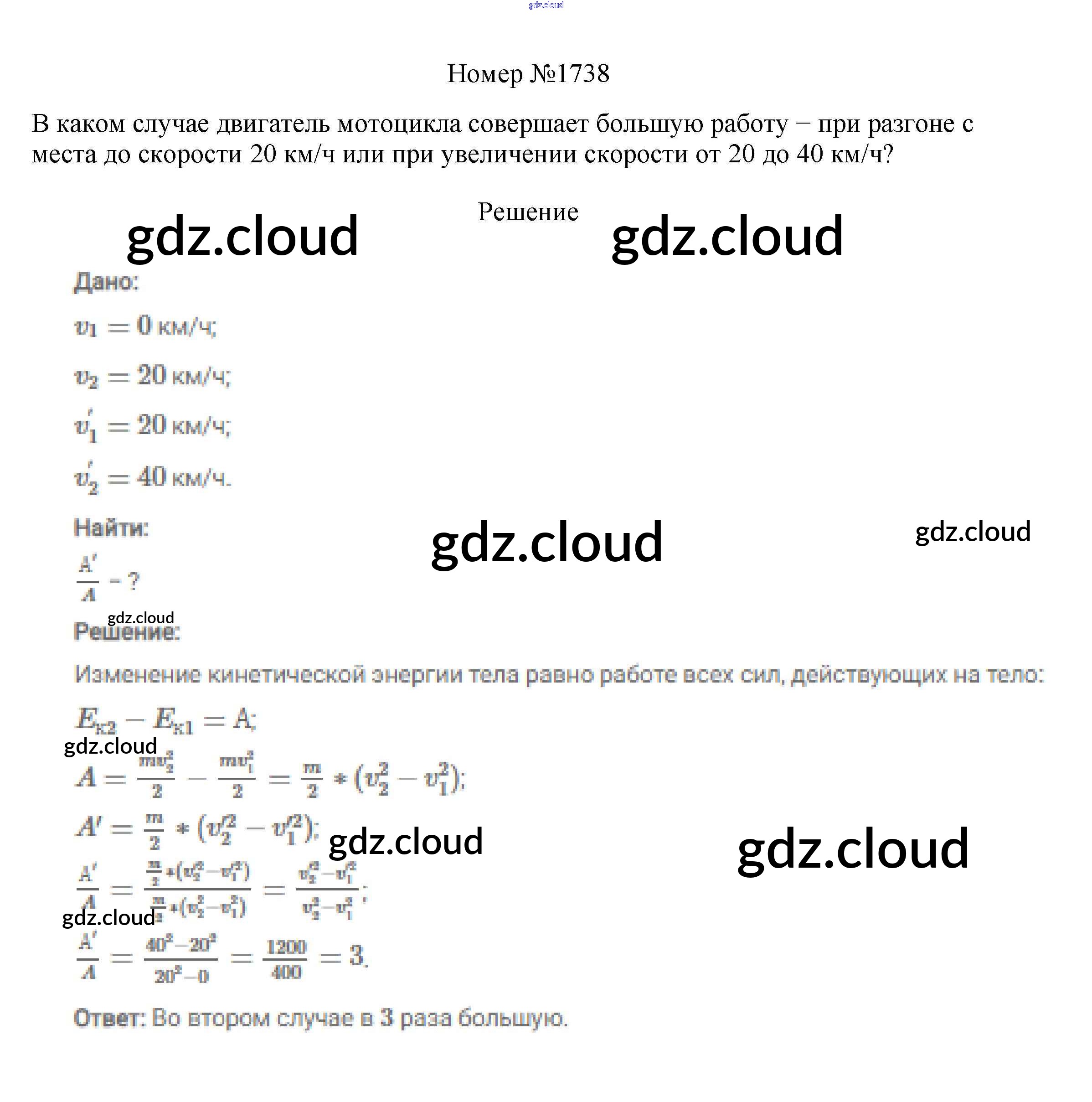 Ответ на задание 1738 Сборник вопросов и задач Физика за 7, 8, 9 (седьмой, восьмой, девятый) класс Марон, Позойский Вертикаль 2013