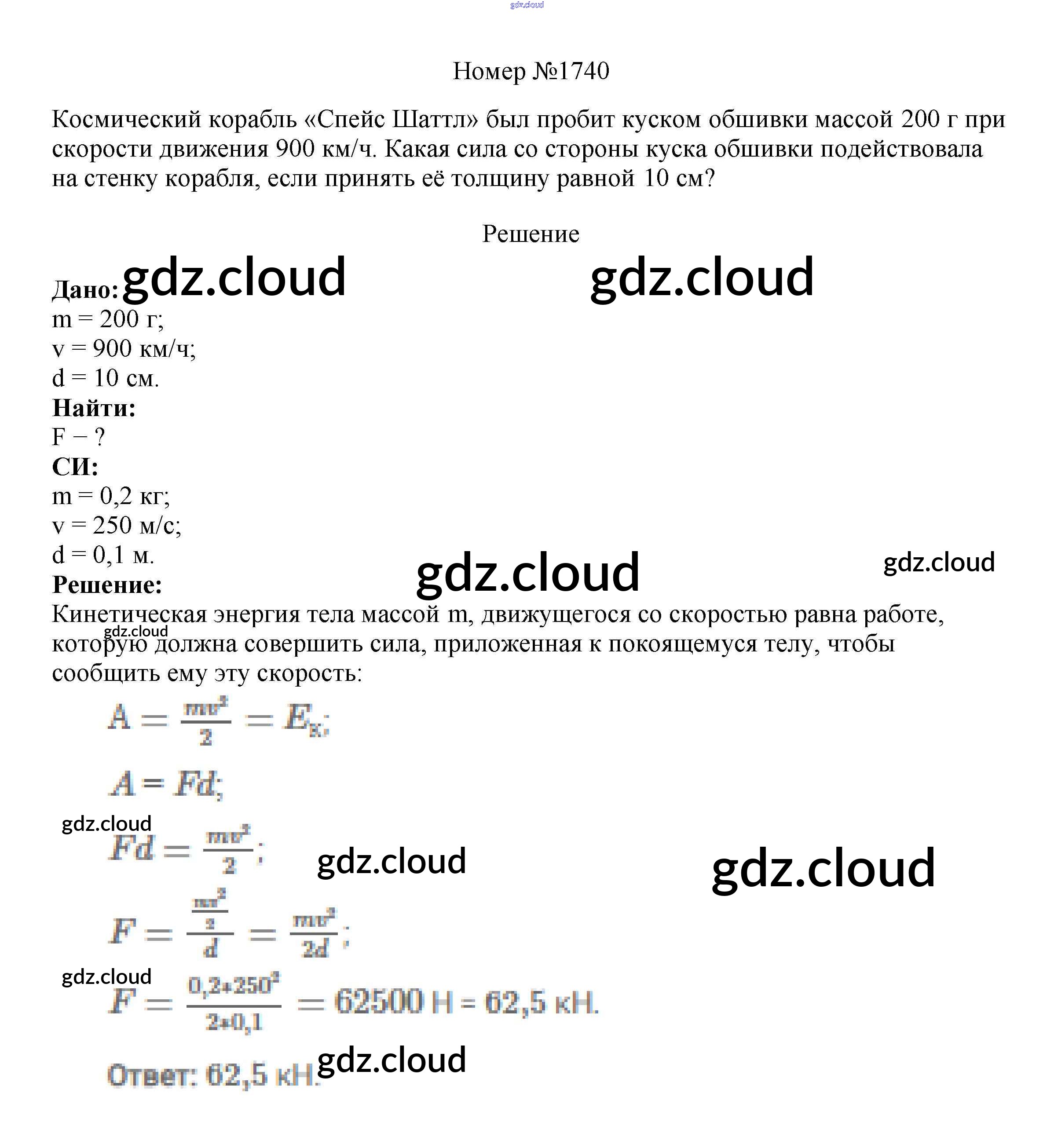 Ответ на задание 1740 Сборник вопросов и задач Физика за 7, 8, 9 (седьмой, восьмой, девятый) класс Марон, Позойский Вертикаль 2013