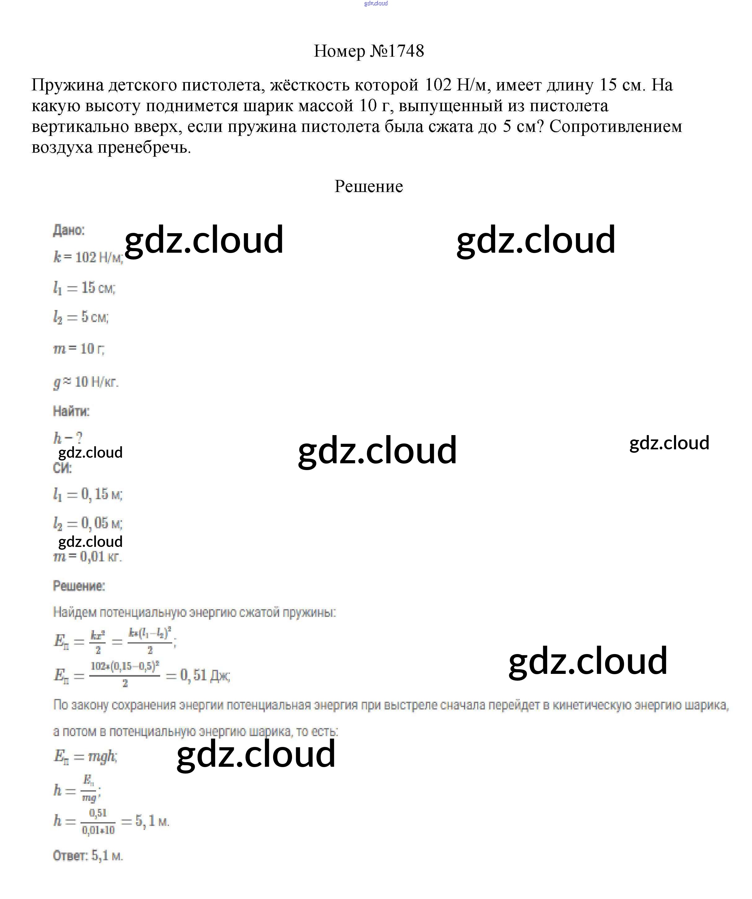Ответ на задание 1748 Сборник вопросов и задач Физика за 7, 8, 9 (седьмой, восьмой, девятый) класс Марон, Позойский Вертикаль 2013