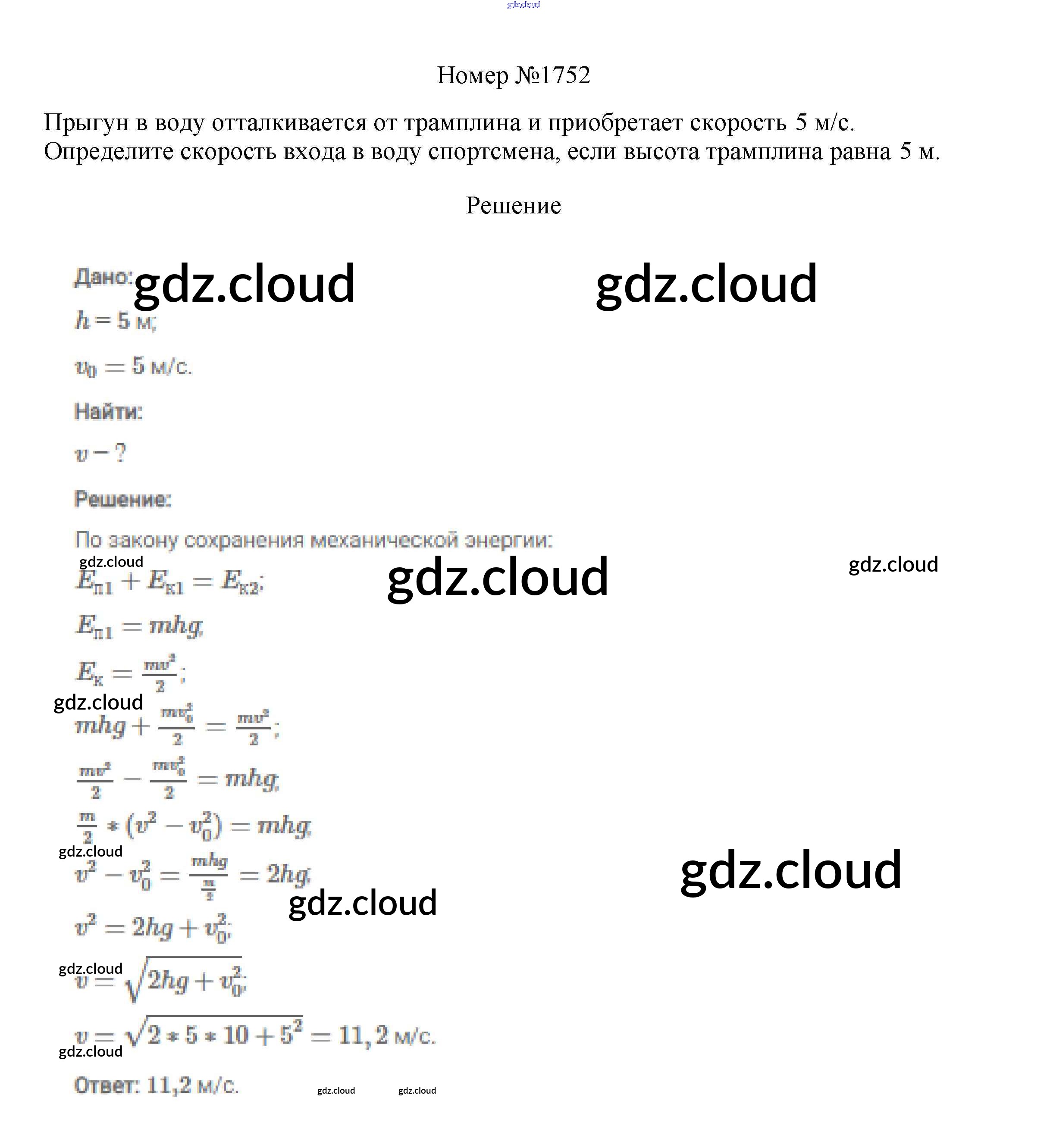 Ответ на задание 1752 Сборник вопросов и задач Физика за 7, 8, 9 (седьмой, восьмой, девятый) класс Марон, Позойский Вертикаль 2013