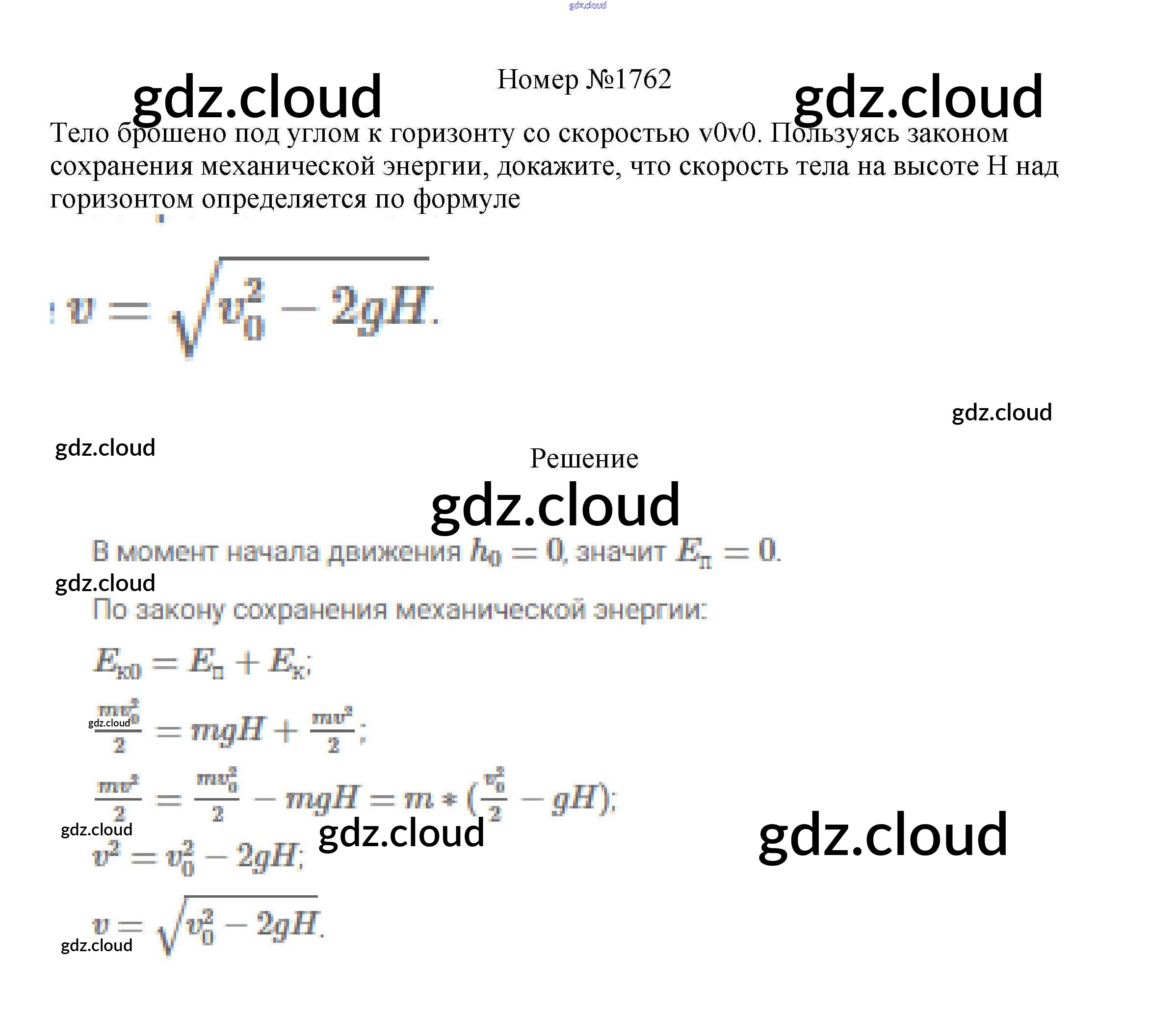 Ответ на задание 1762 Сборник вопросов и задач Физика за 7, 8, 9 (седьмой, восьмой, девятый) класс Марон, Позойский Вертикаль 2013