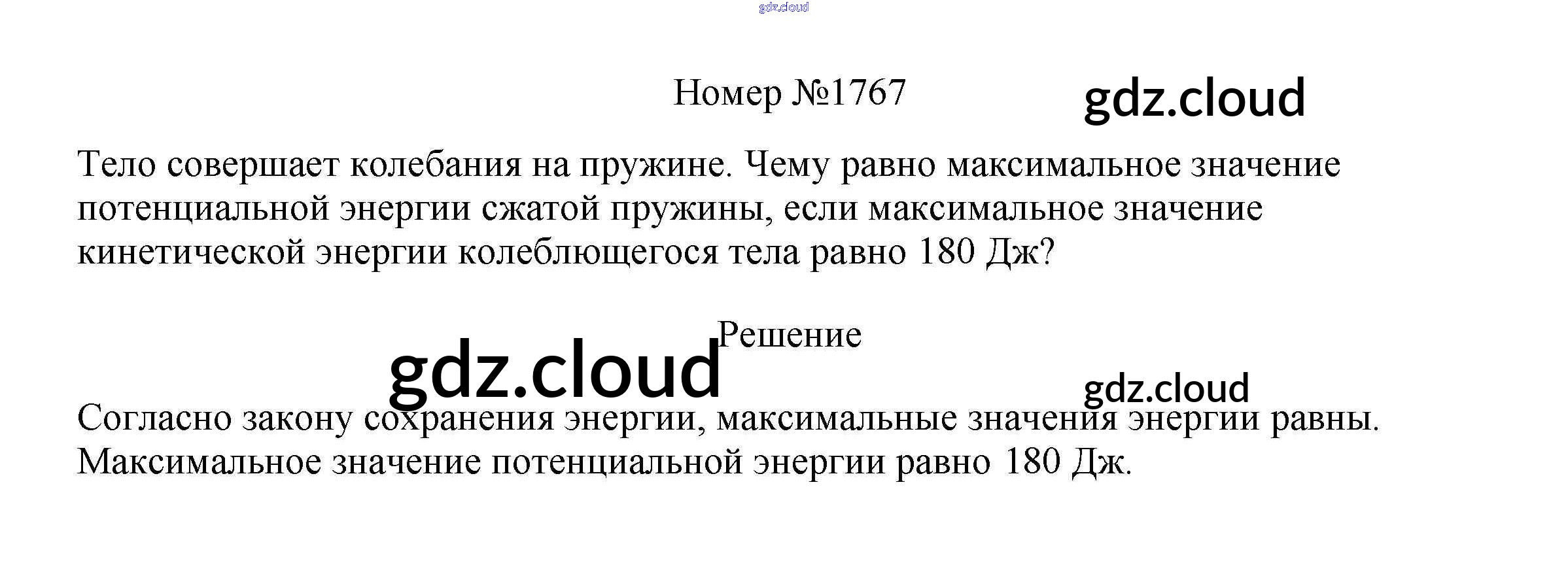 Ответ на задание 1767 Сборник вопросов и задач Физика за 7, 8, 9 (седьмой, восьмой, девятый) класс Марон, Позойский Вертикаль 2013