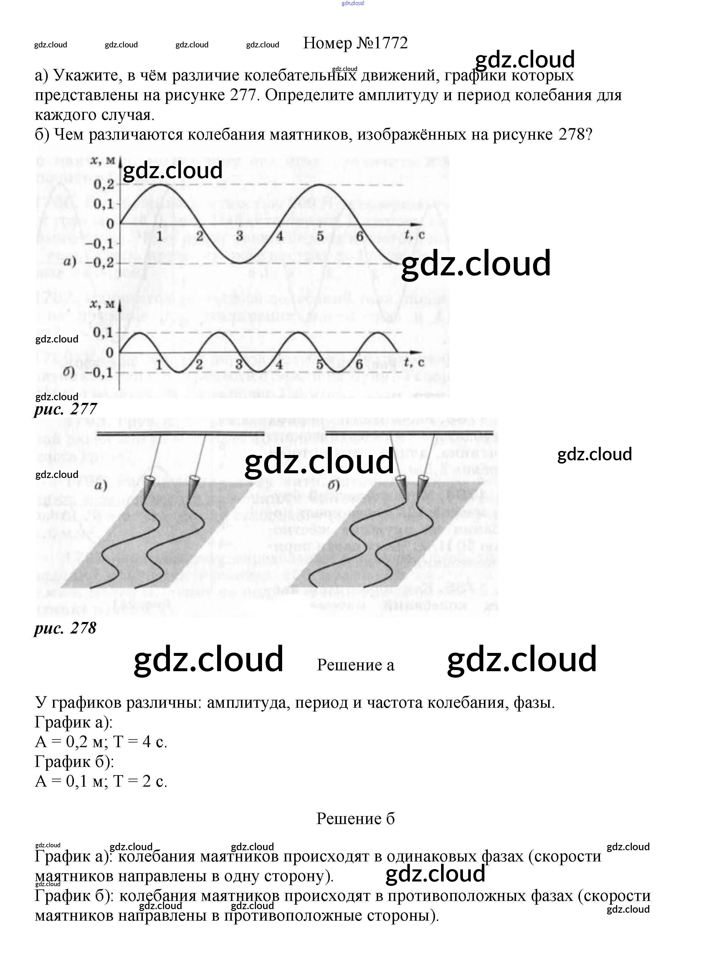 Ответ на задание 1772 Сборник вопросов и задач Физика за 7, 8, 9 (седьмой, восьмой, девятый) класс Марон, Позойский Вертикаль 2013