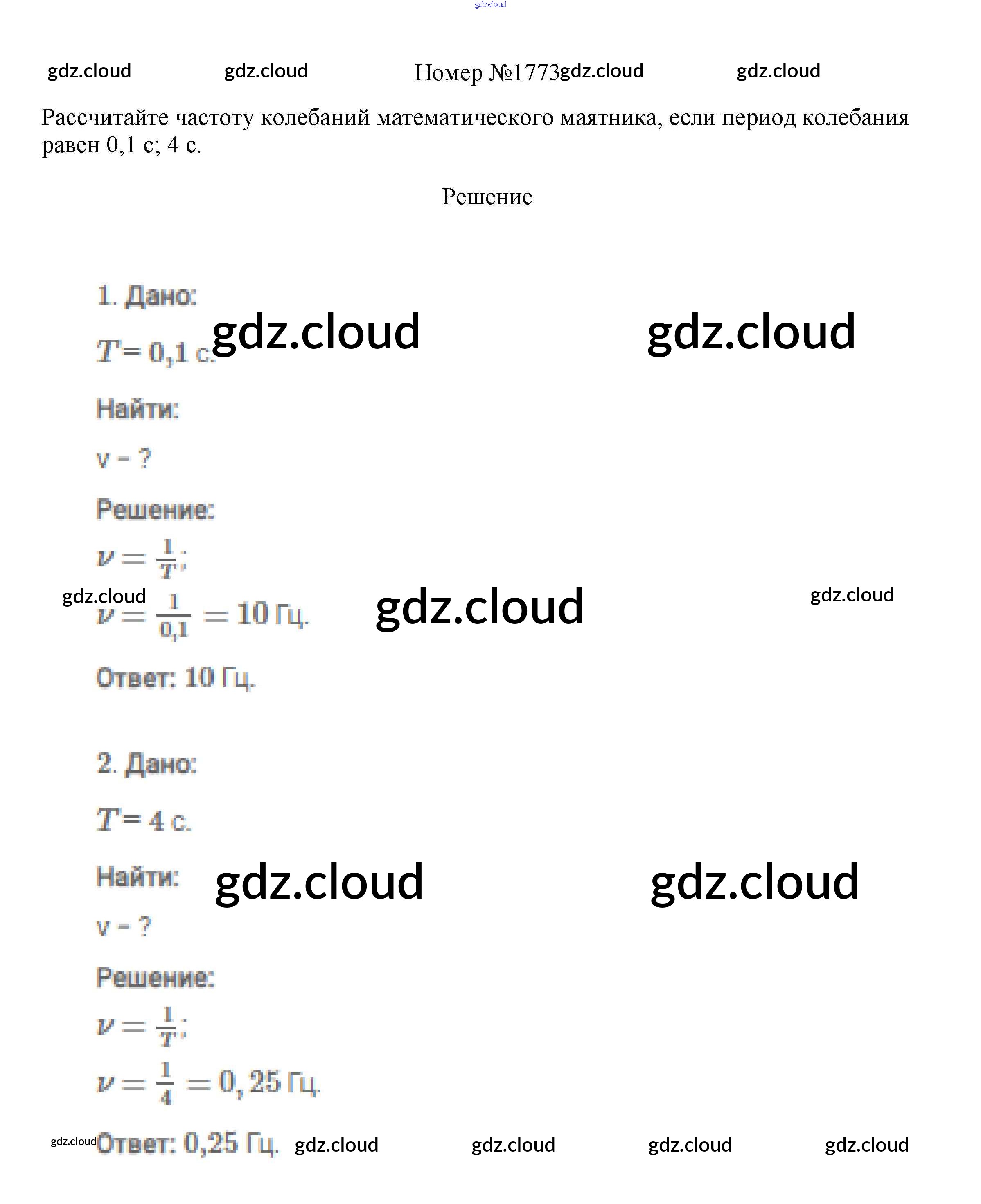 Ответ на задание 1773 Сборник вопросов и задач Физика за 7, 8, 9 (седьмой, восьмой, девятый) класс Марон, Позойский Вертикаль 2013