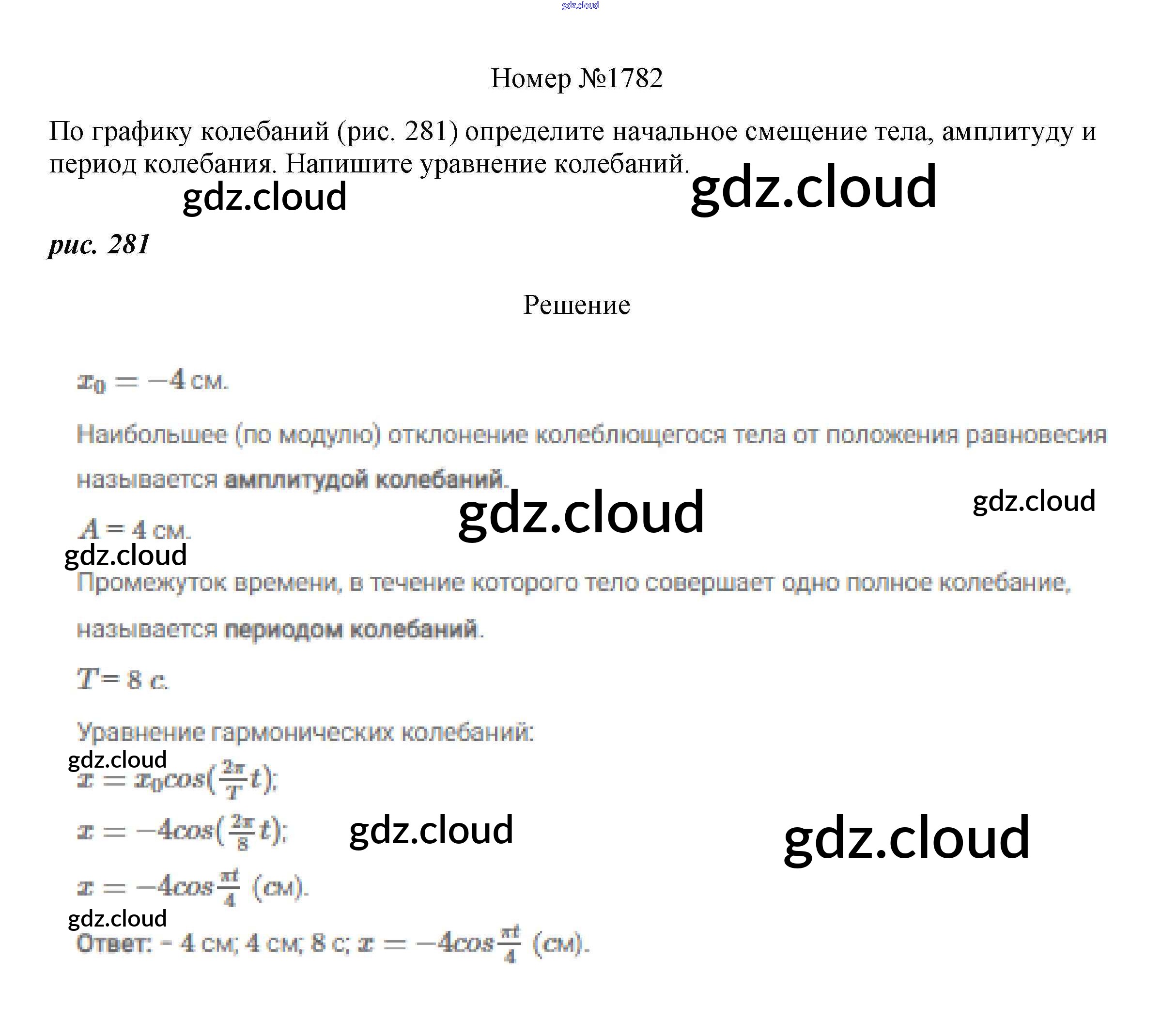 Ответ на задание 1782 Сборник вопросов и задач Физика за 7, 8, 9 (седьмой, восьмой, девятый) класс Марон, Позойский Вертикаль 2013
