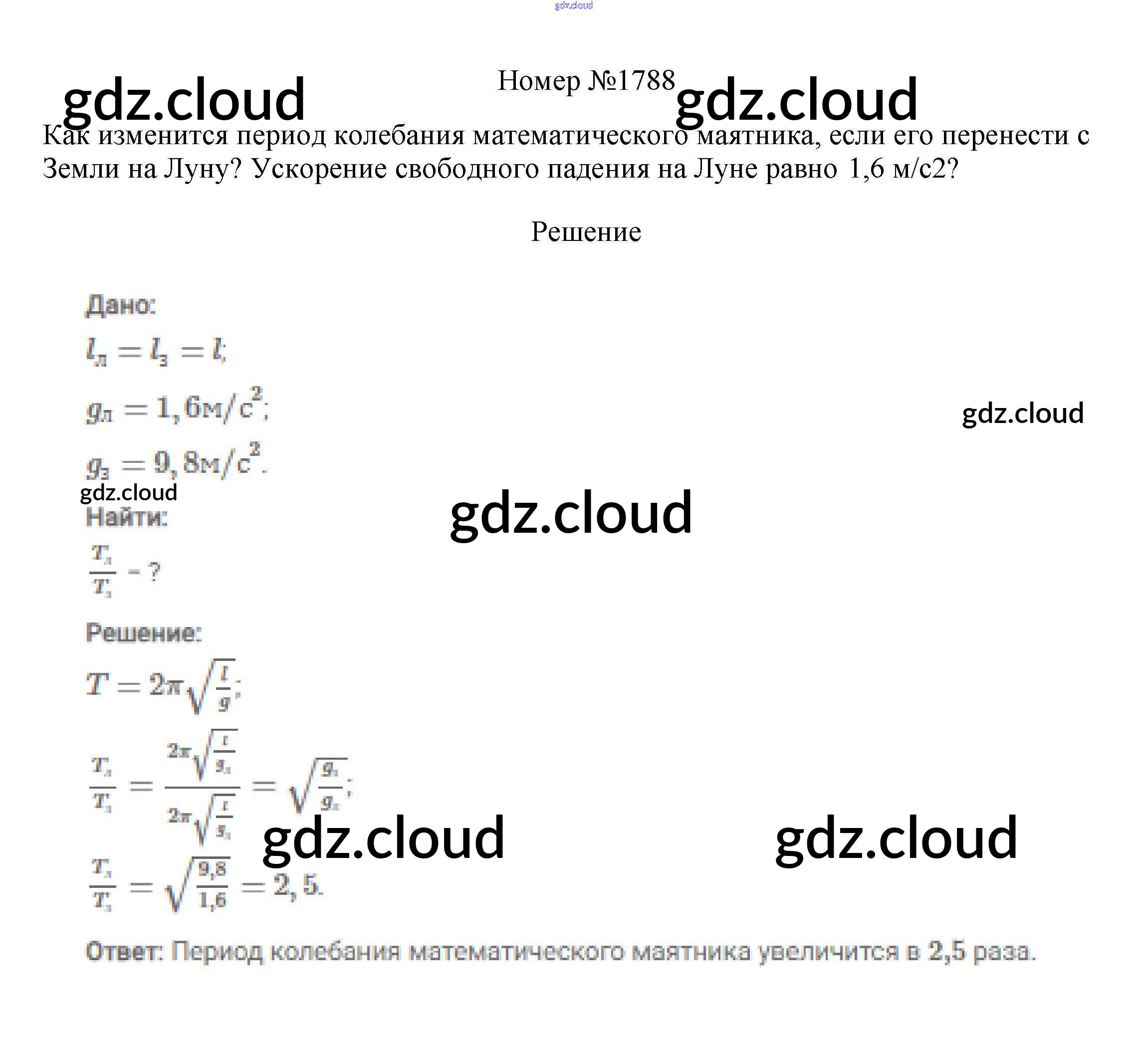 Ответ на задание 1788 Сборник вопросов и задач Физика за 7, 8, 9 (седьмой, восьмой, девятый) класс Марон, Позойский Вертикаль 2013