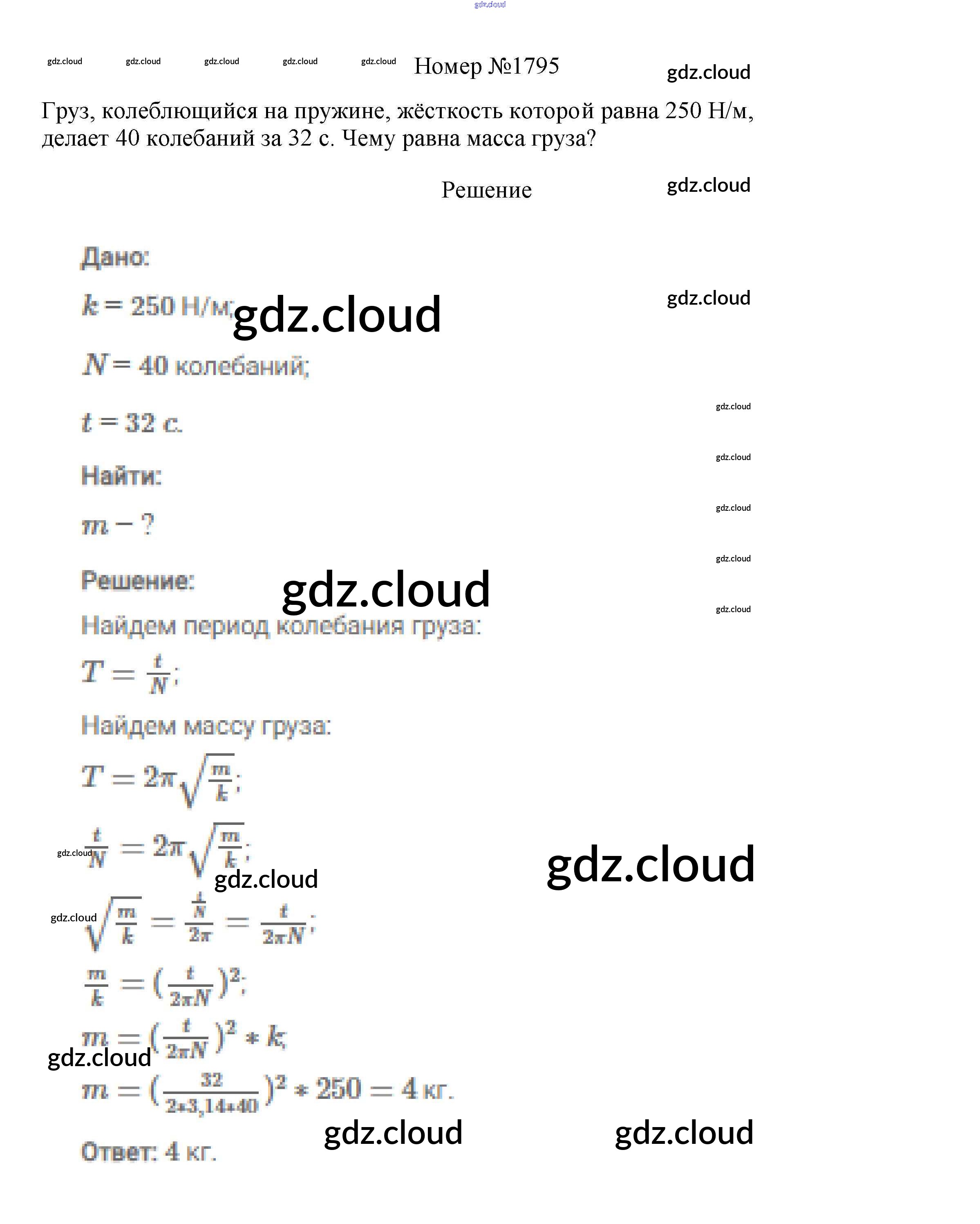 Ответ на задание 1795 Сборник вопросов и задач Физика за 7, 8, 9 (седьмой, восьмой, девятый) класс Марон, Позойский Вертикаль 2013
