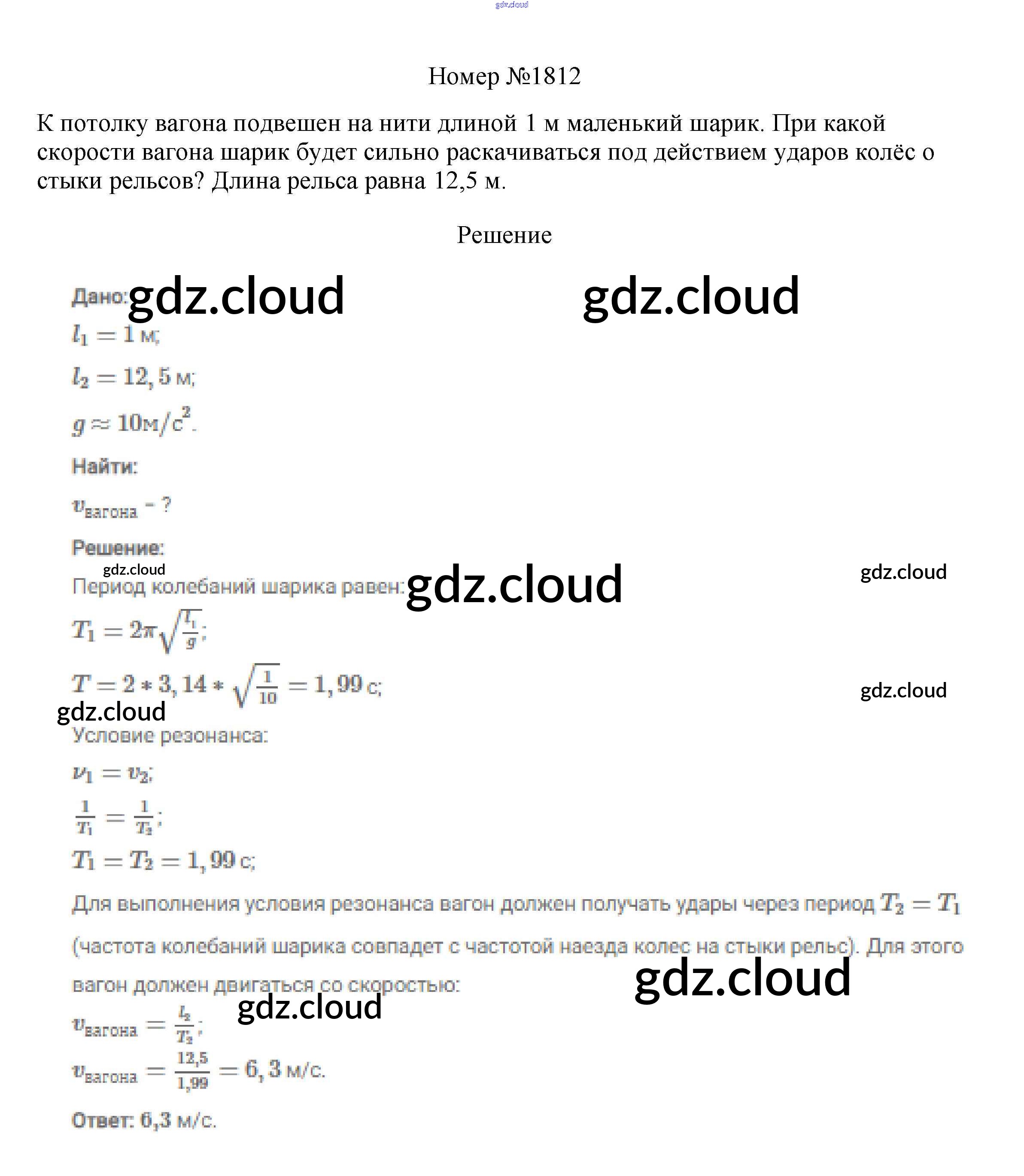 Ответ на задание 1812 Сборник вопросов и задач Физика за 7, 8, 9 (седьмой, восьмой, девятый) класс Марон, Позойский Вертикаль 2013