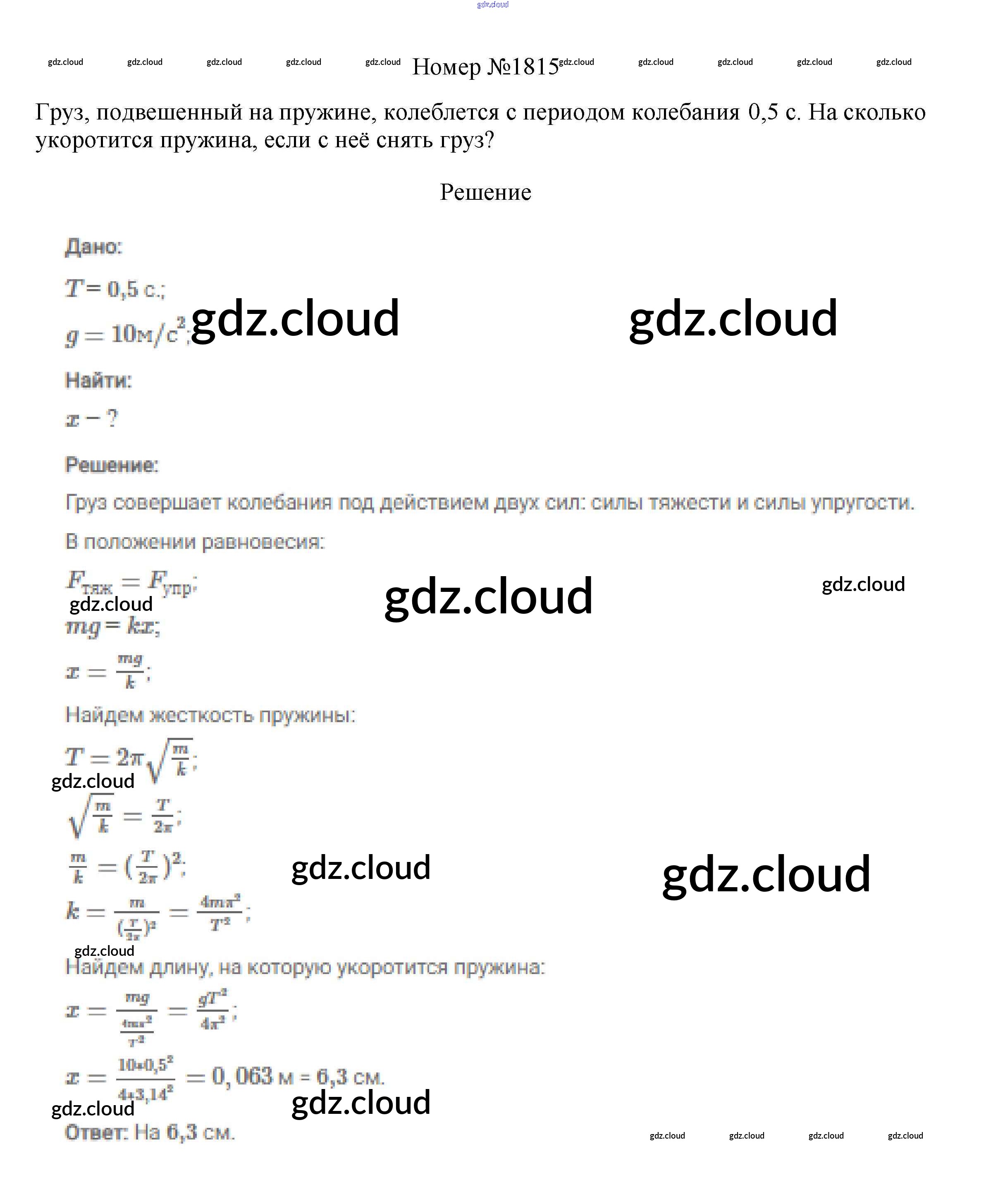Ответ на задание 1815 Сборник вопросов и задач Физика за 7, 8, 9 (седьмой, восьмой, девятый) класс Марон, Позойский Вертикаль 2013