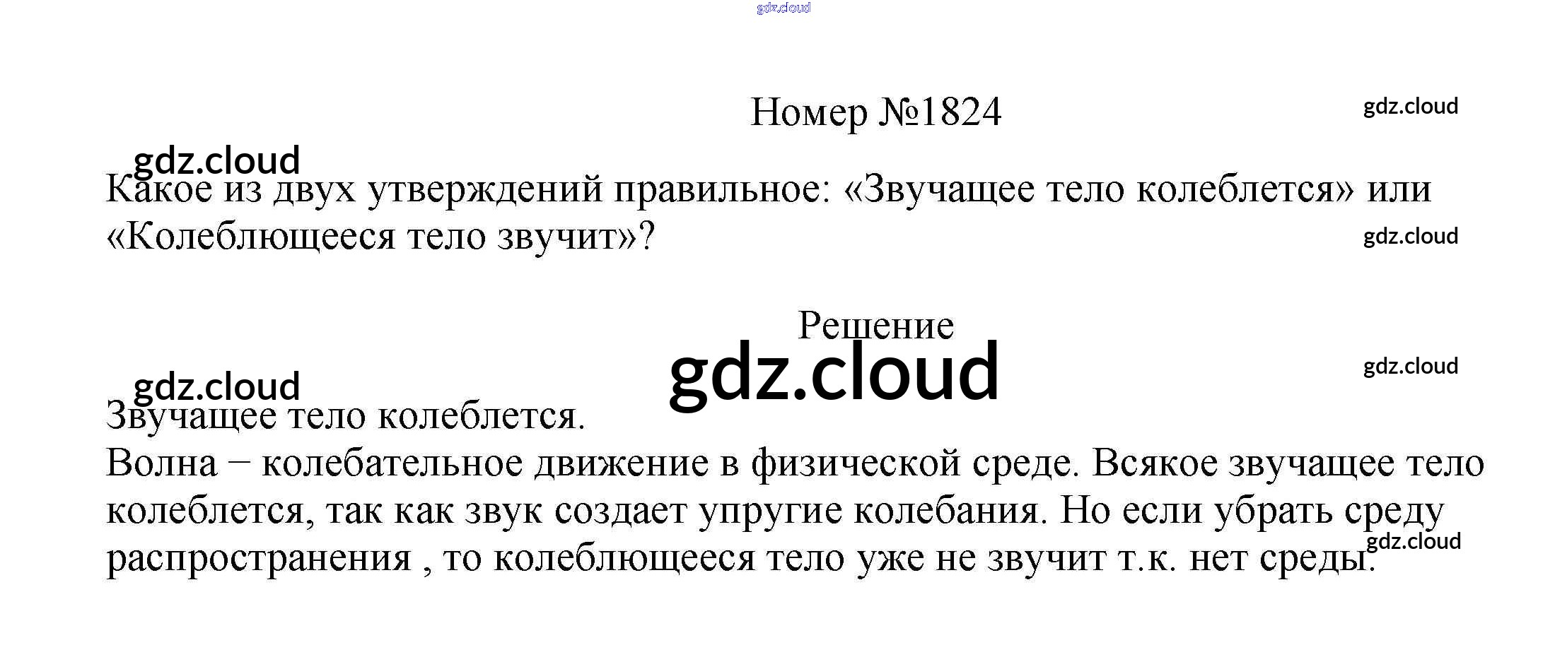Ответ на задание 1824 Сборник вопросов и задач Физика за 7, 8, 9 (седьмой, восьмой, девятый) класс Марон, Позойский Вертикаль 2013