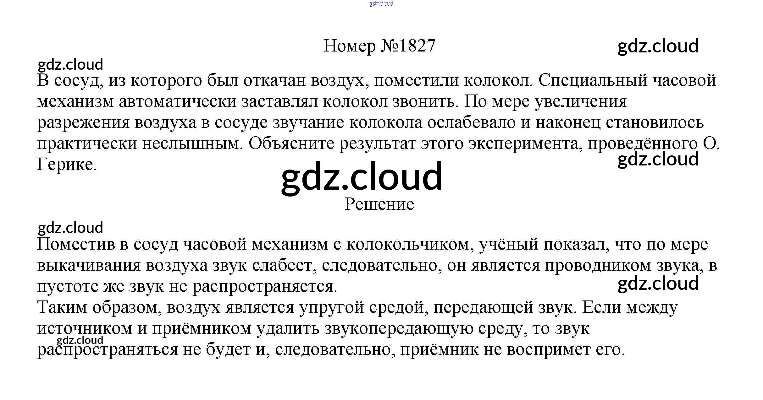 Ответ на задание 1827 Сборник вопросов и задач Физика за 7, 8, 9 (седьмой, восьмой, девятый) класс Марон, Позойский Вертикаль 2013