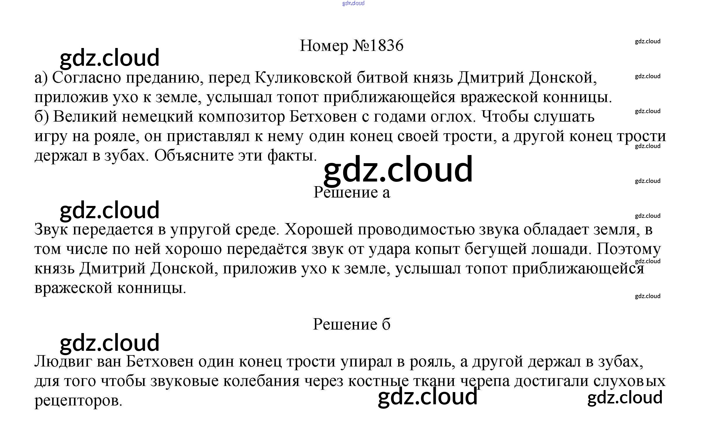 Ответ на задание 1836 Сборник вопросов и задач Физика за 7, 8, 9 (седьмой, восьмой, девятый) класс Марон, Позойский Вертикаль 2013