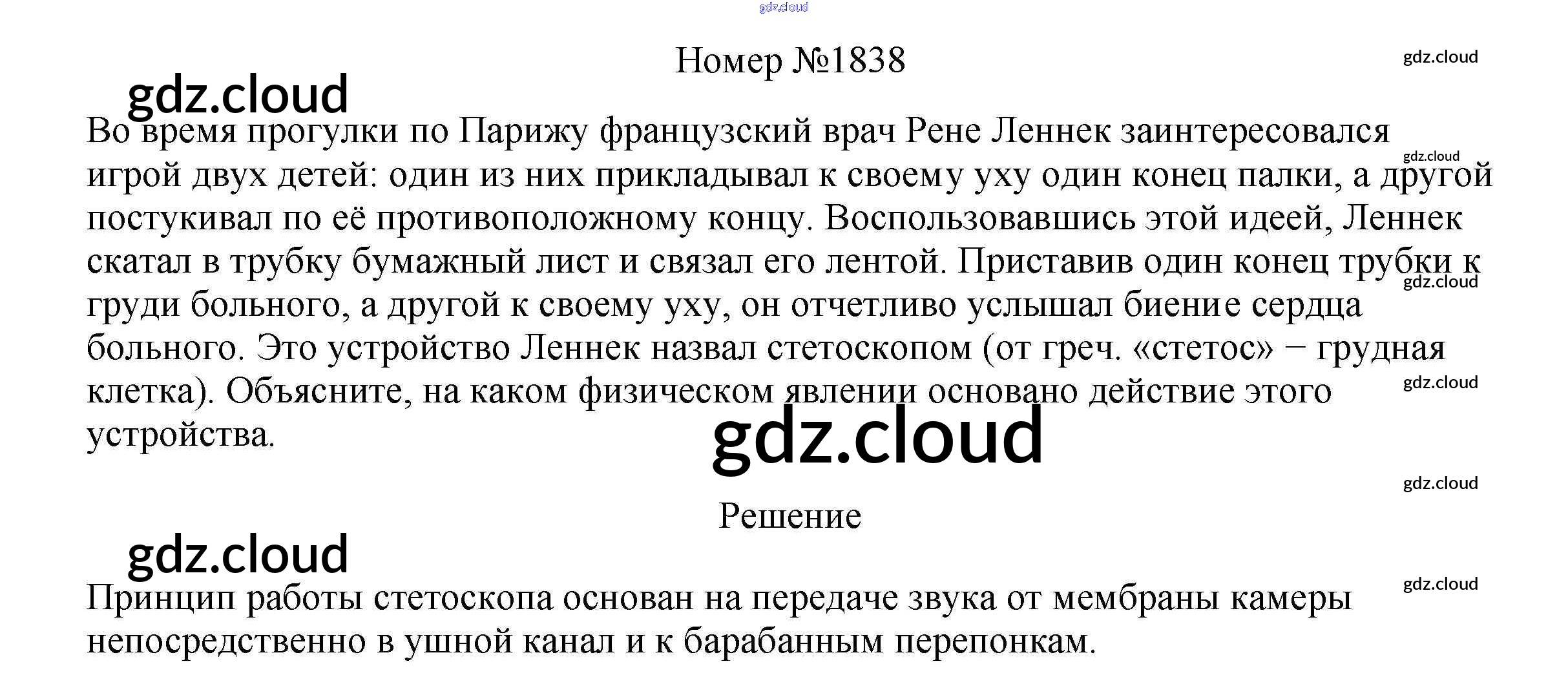 Ответ на задание 1838 Сборник вопросов и задач Физика за 7, 8, 9 (седьмой, восьмой, девятый) класс Марон, Позойский Вертикаль 2013