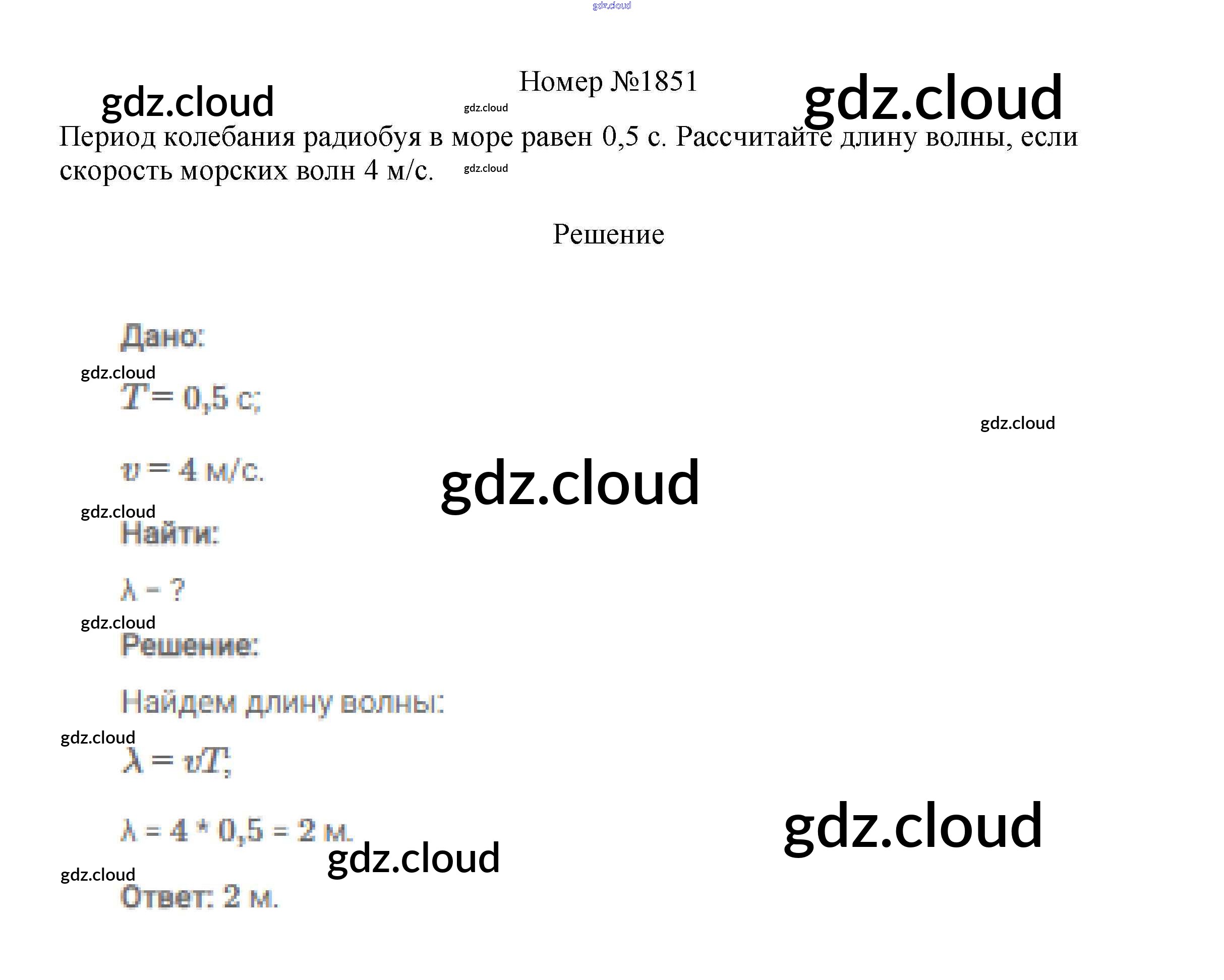 Ответ на задание 1851 Сборник вопросов и задач Физика за 7, 8, 9 (седьмой, восьмой, девятый) класс Марон, Позойский Вертикаль 2013