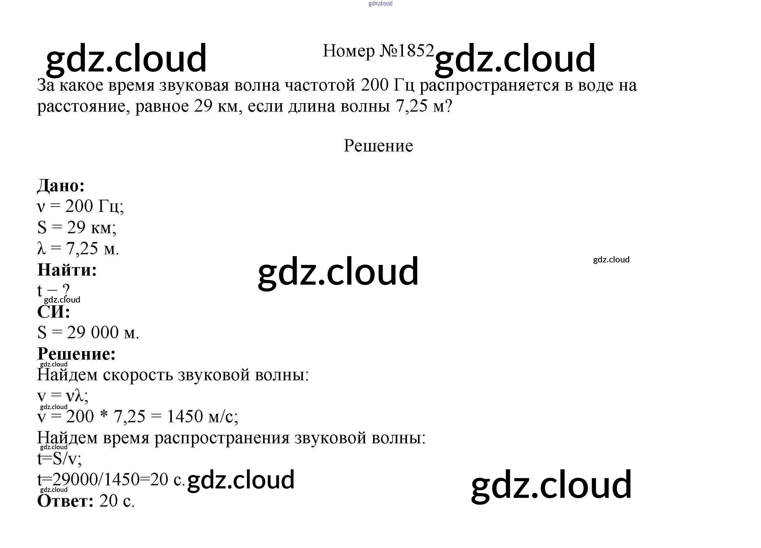 Ответ на задание 1852 Сборник вопросов и задач Физика за 7, 8, 9 (седьмой, восьмой, девятый) класс Марон, Позойский Вертикаль 2013