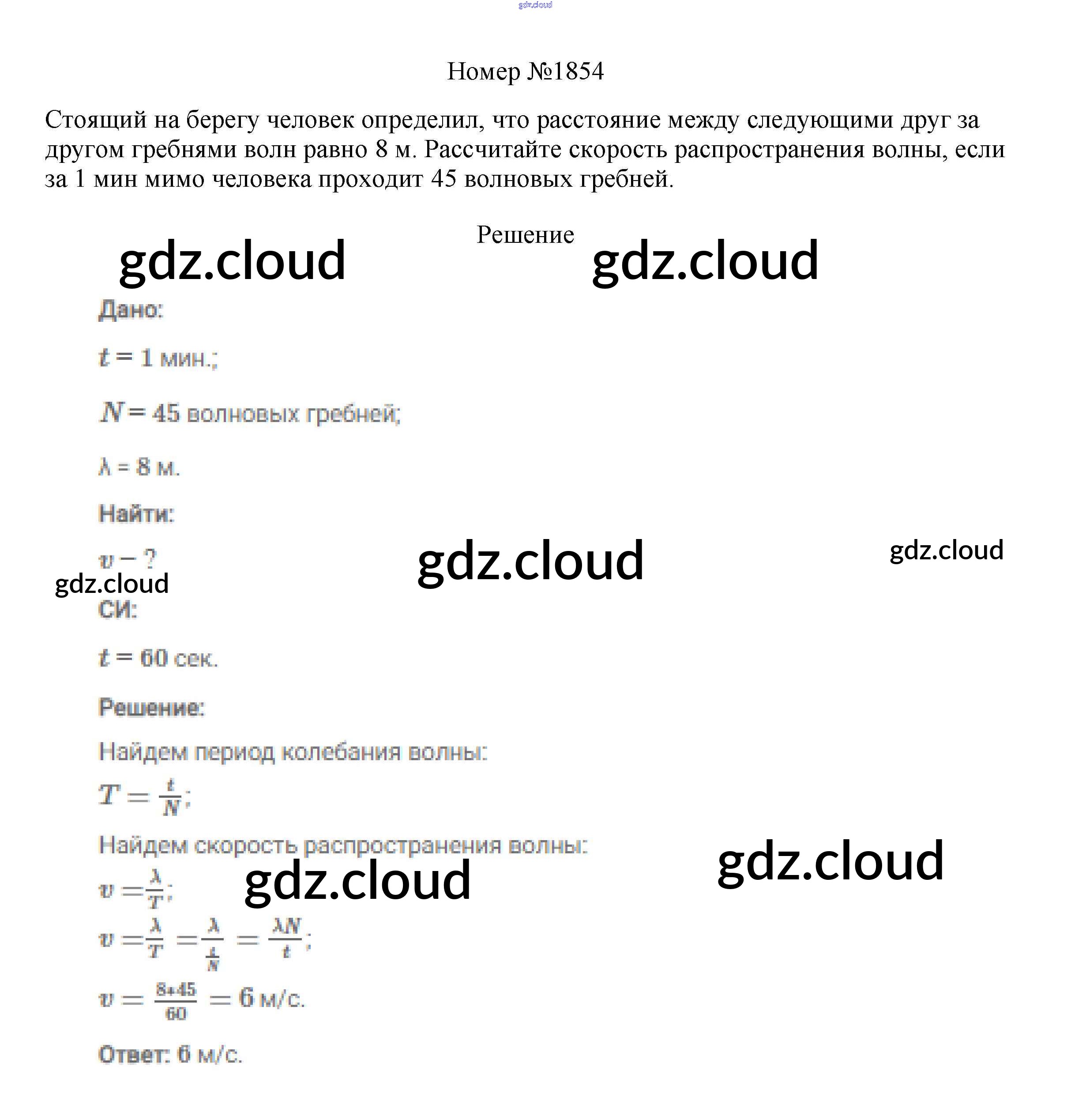 Ответ на задание 1854 Сборник вопросов и задач Физика за 7, 8, 9 (седьмой, восьмой, девятый) класс Марон, Позойский Вертикаль 2013