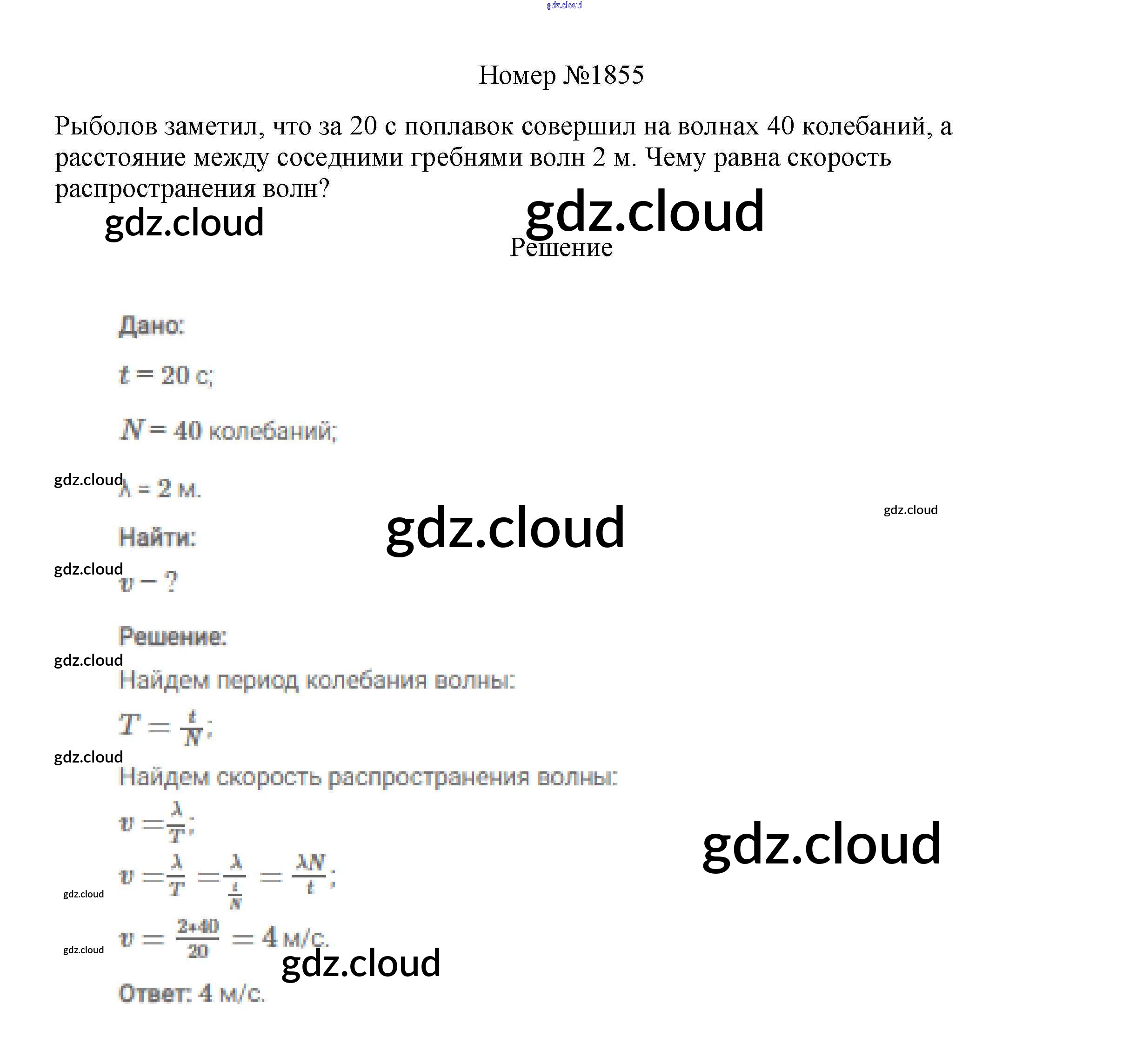 Ответ на задание 1855 Сборник вопросов и задач Физика за 7, 8, 9 (седьмой, восьмой, девятый) класс Марон, Позойский Вертикаль 2013