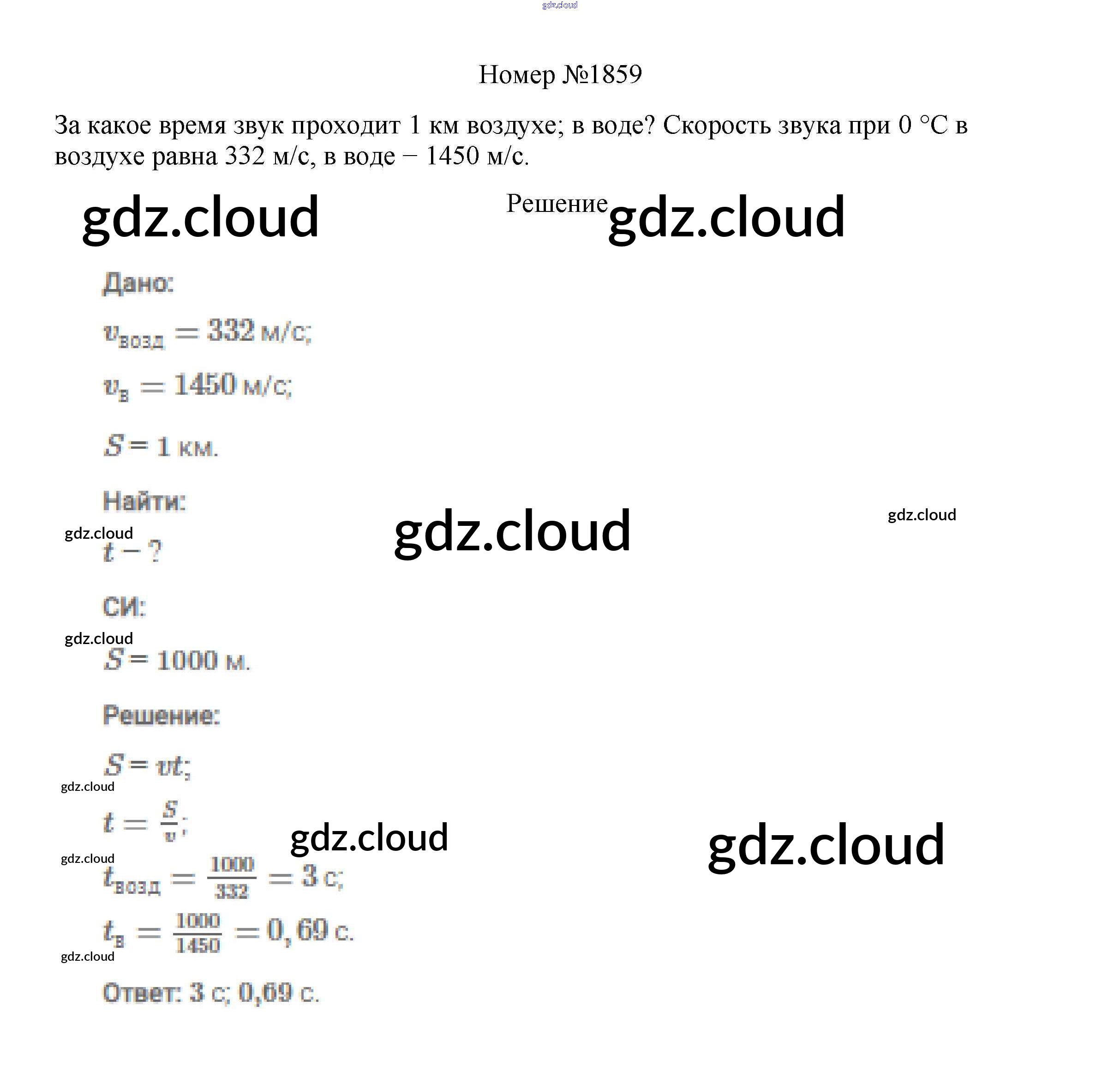 Ответ на задание 1859 Сборник вопросов и задач Физика за 7, 8, 9 (седьмой, восьмой, девятый) класс Марон, Позойский Вертикаль 2013