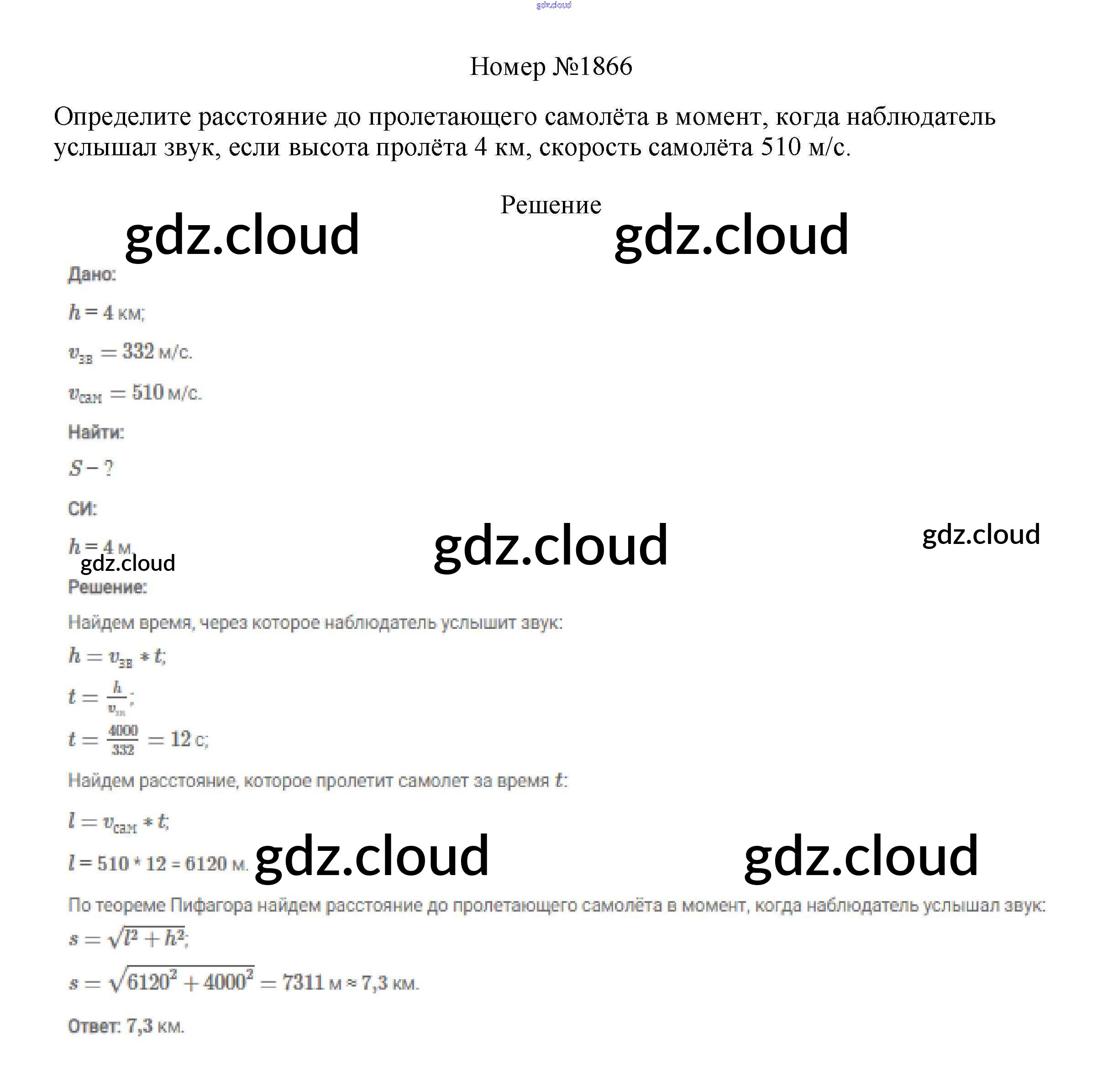Ответ на задание 1866 Сборник вопросов и задач Физика за 7, 8, 9 (седьмой, восьмой, девятый) класс Марон, Позойский Вертикаль 2013