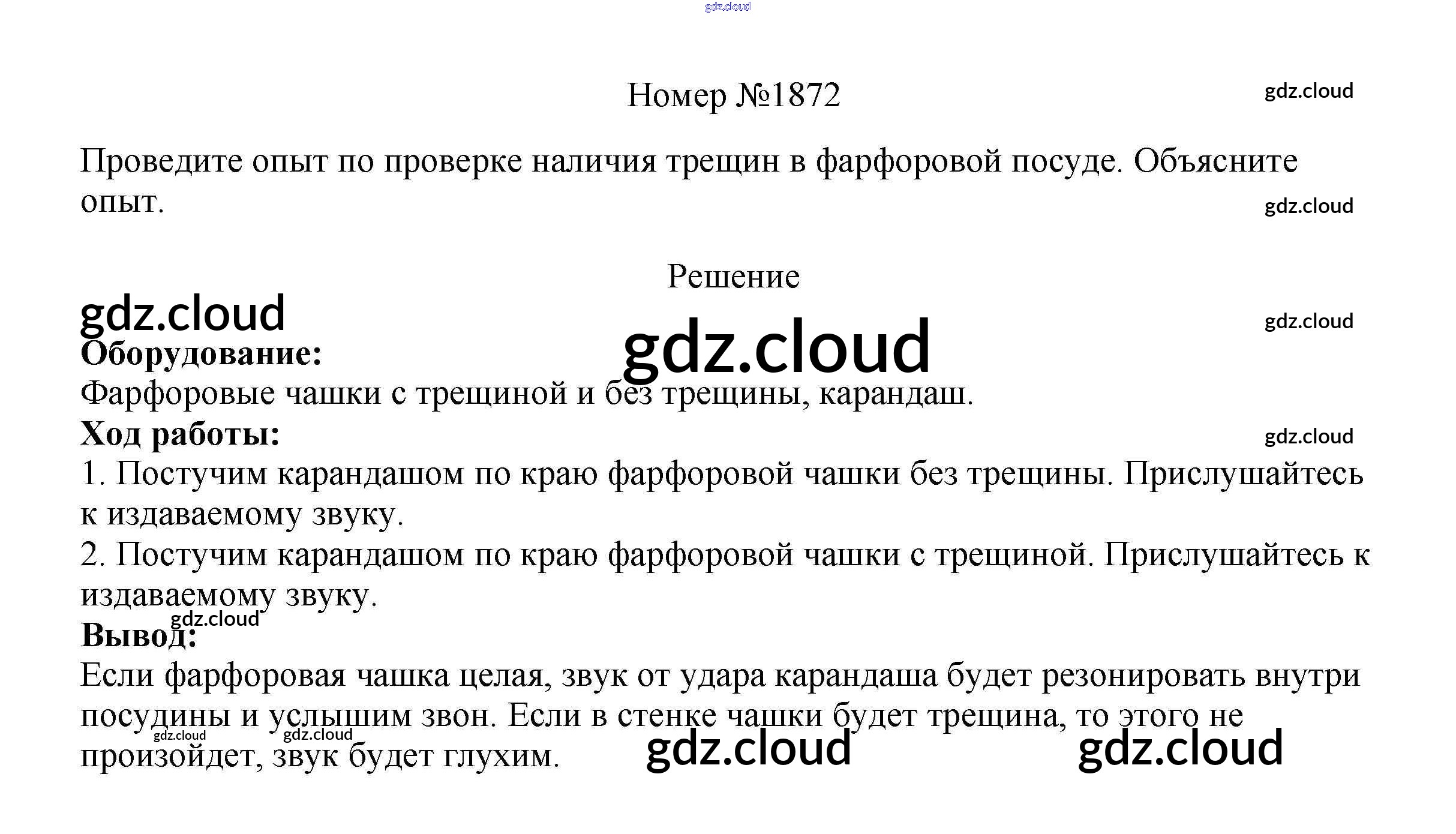 Ответ на задание 1872 Сборник вопросов и задач Физика за 7, 8, 9 (седьмой, восьмой, девятый) класс Марон, Позойский Вертикаль 2013
