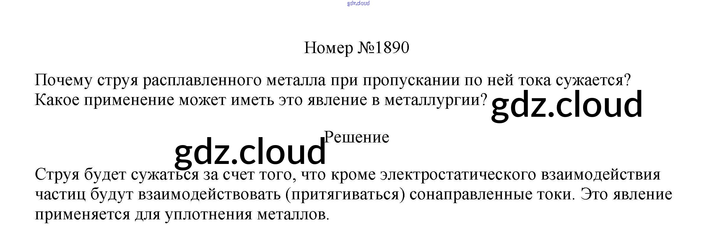 Ответ на задание 1890 Сборник вопросов и задач Физика за 7, 8, 9 (седьмой, восьмой, девятый) класс Марон, Позойский Вертикаль 2013