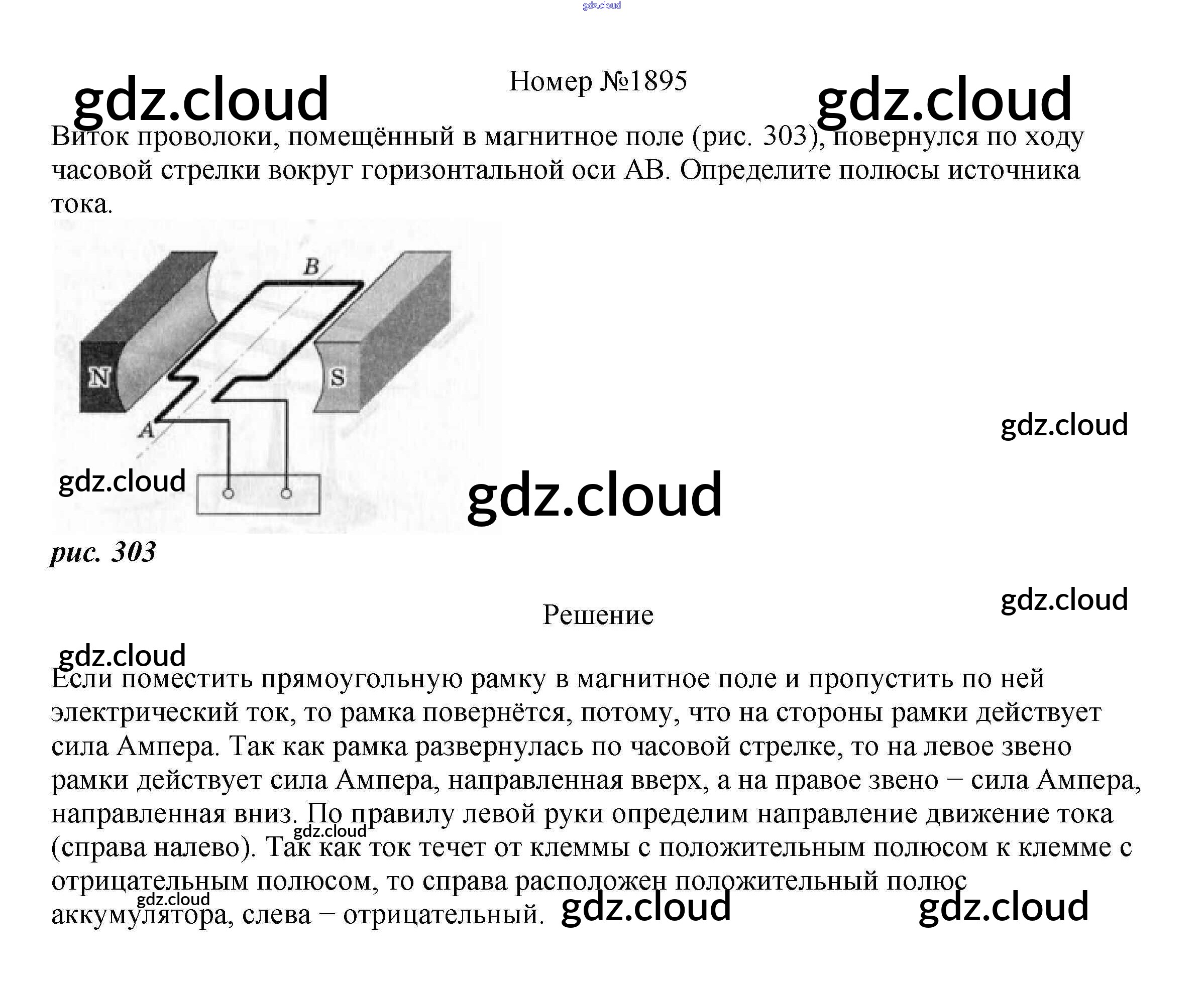Ответ на задание 1895 Сборник вопросов и задач Физика за 7, 8, 9 (седьмой, восьмой, девятый) класс Марон, Позойский Вертикаль 2013