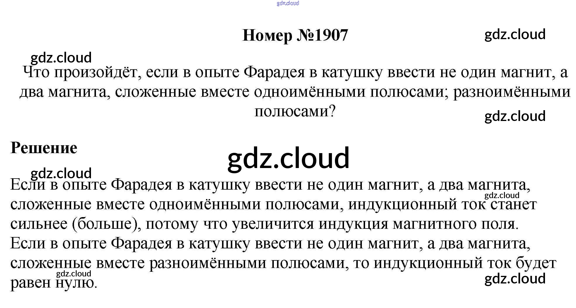 Ответ на задание 1907 Сборник вопросов и задач Физика за 7, 8, 9 (седьмой, восьмой, девятый) класс Марон, Позойский Вертикаль 2013
