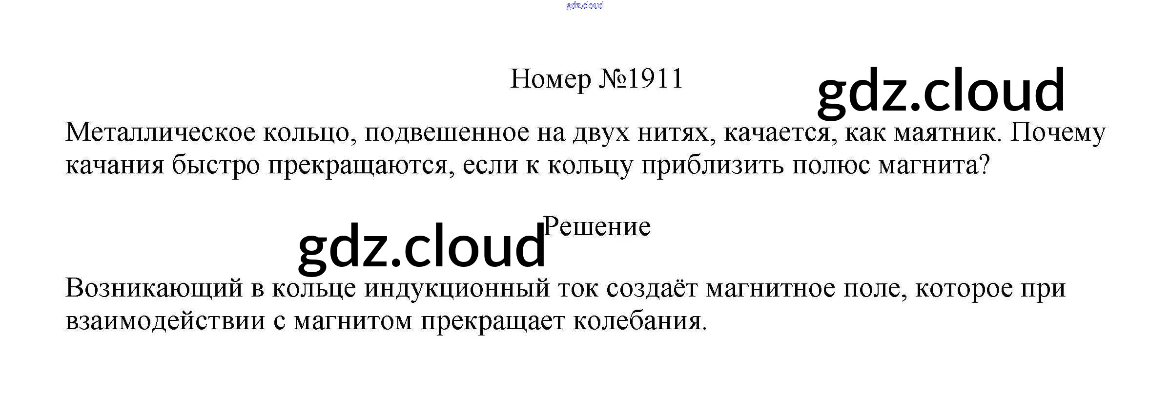 Ответ на задание 1911 Сборник вопросов и задач Физика за 7, 8, 9 (седьмой, восьмой, девятый) класс Марон, Позойский Вертикаль 2013