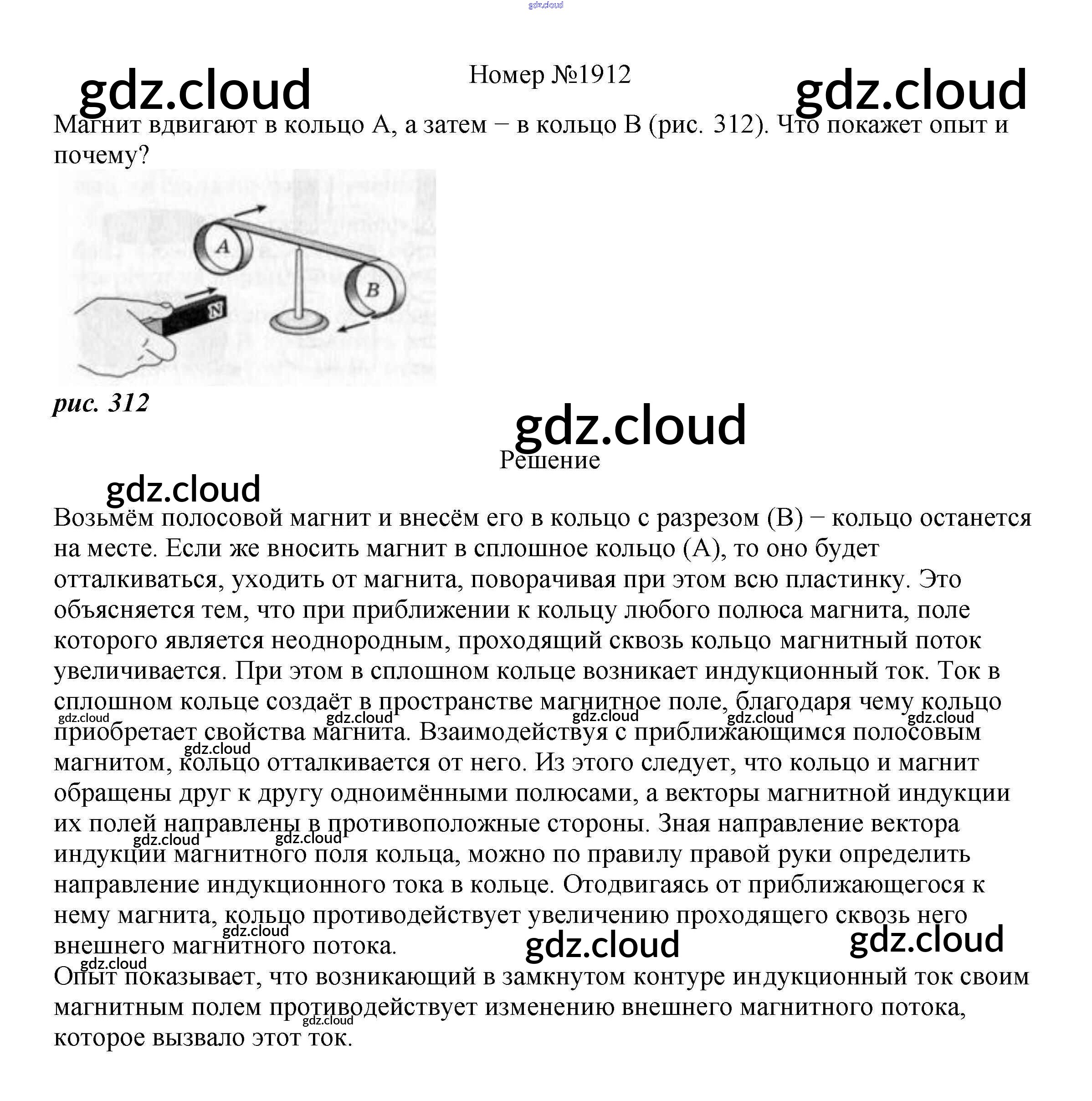 Ответ на задание 1912 Сборник вопросов и задач Физика за 7, 8, 9 (седьмой, восьмой, девятый) класс Марон, Позойский Вертикаль 2013