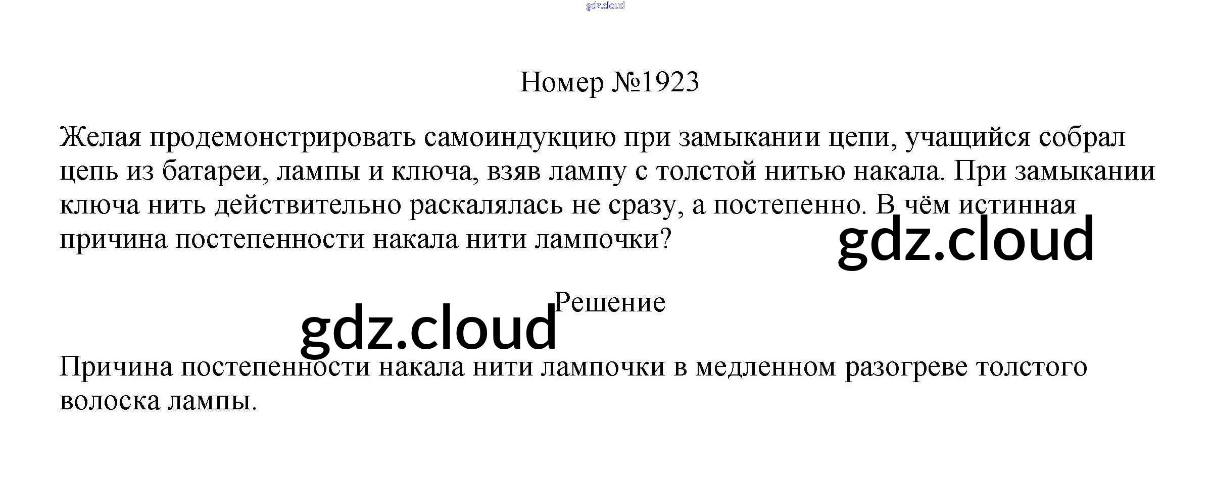 Ответ на задание 1923 Сборник вопросов и задач Физика за 7, 8, 9 (седьмой, восьмой, девятый) класс Марон, Позойский Вертикаль 2013