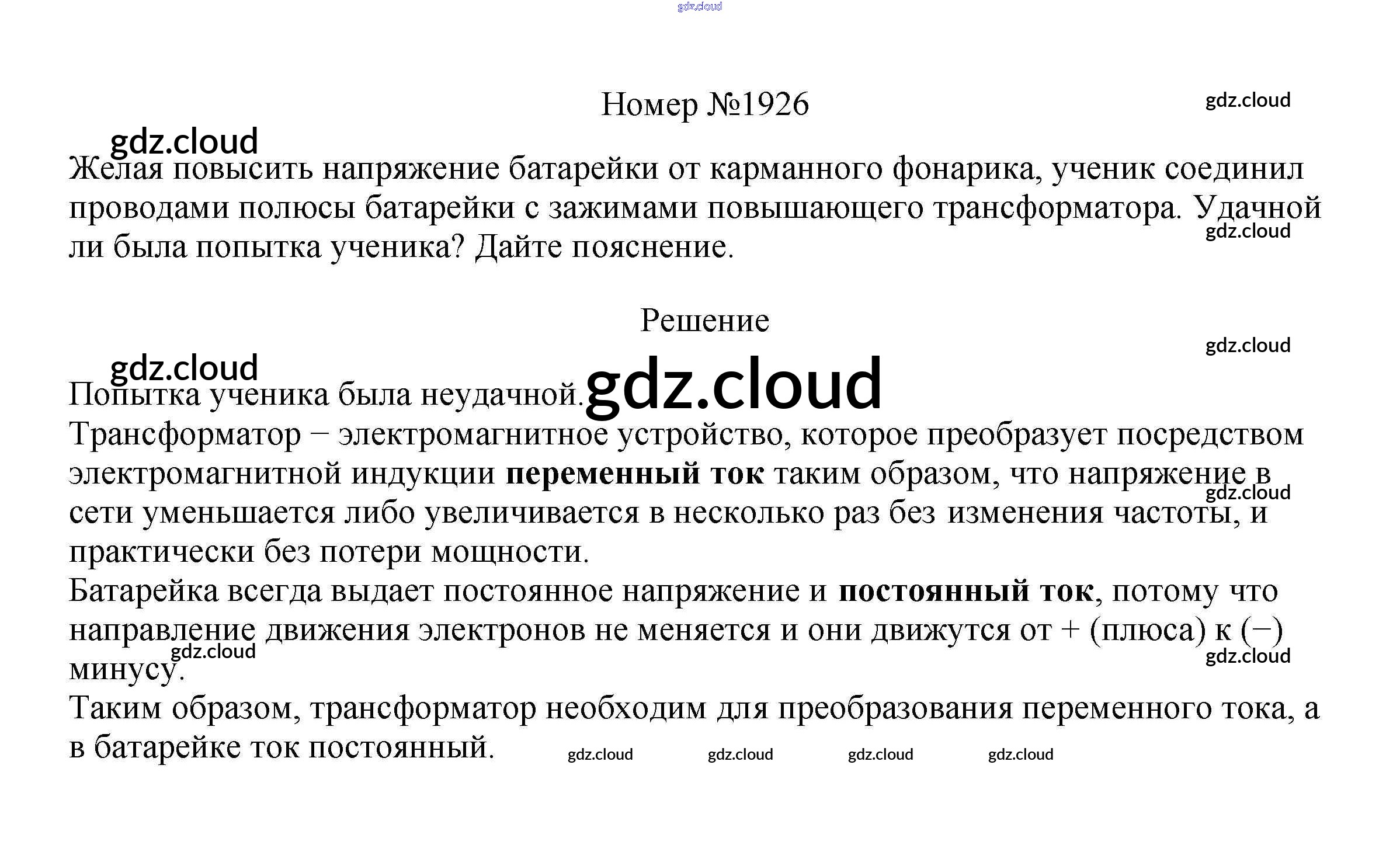 Ответ на задание 1926 Сборник вопросов и задач Физика за 7, 8, 9 (седьмой, восьмой, девятый) класс Марон, Позойский Вертикаль 2013