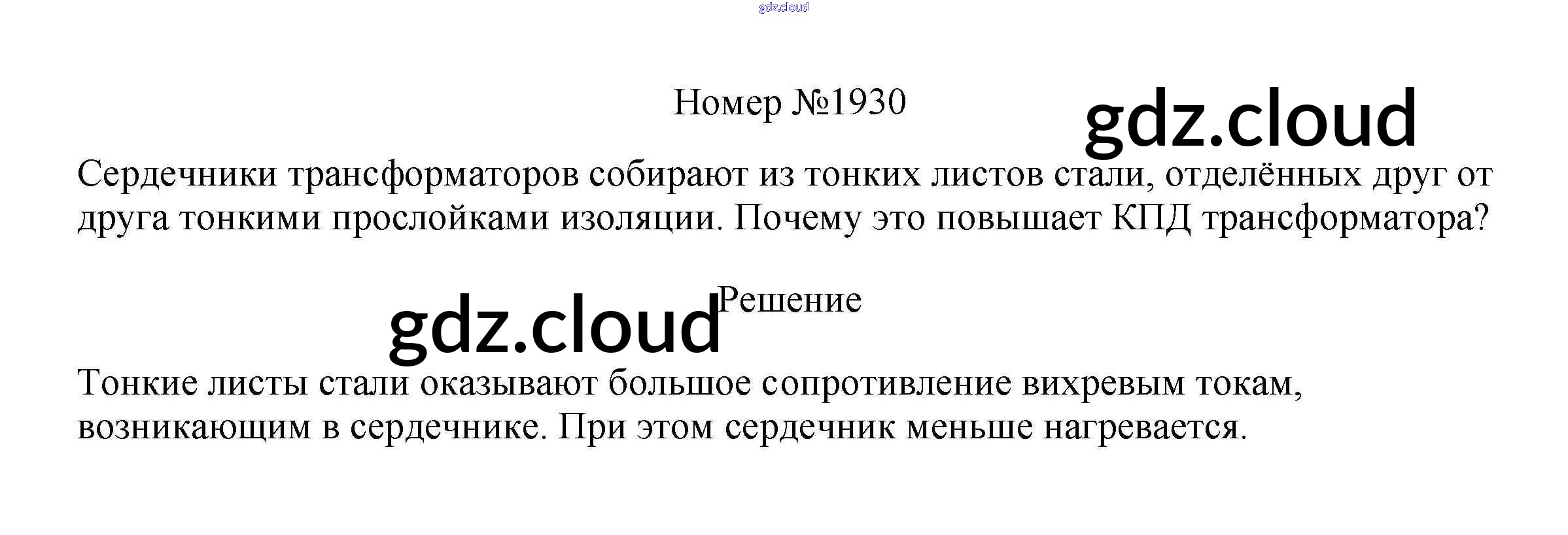Ответ на задание 1930 Сборник вопросов и задач Физика за 7, 8, 9 (седьмой, восьмой, девятый) класс Марон, Позойский Вертикаль 2013