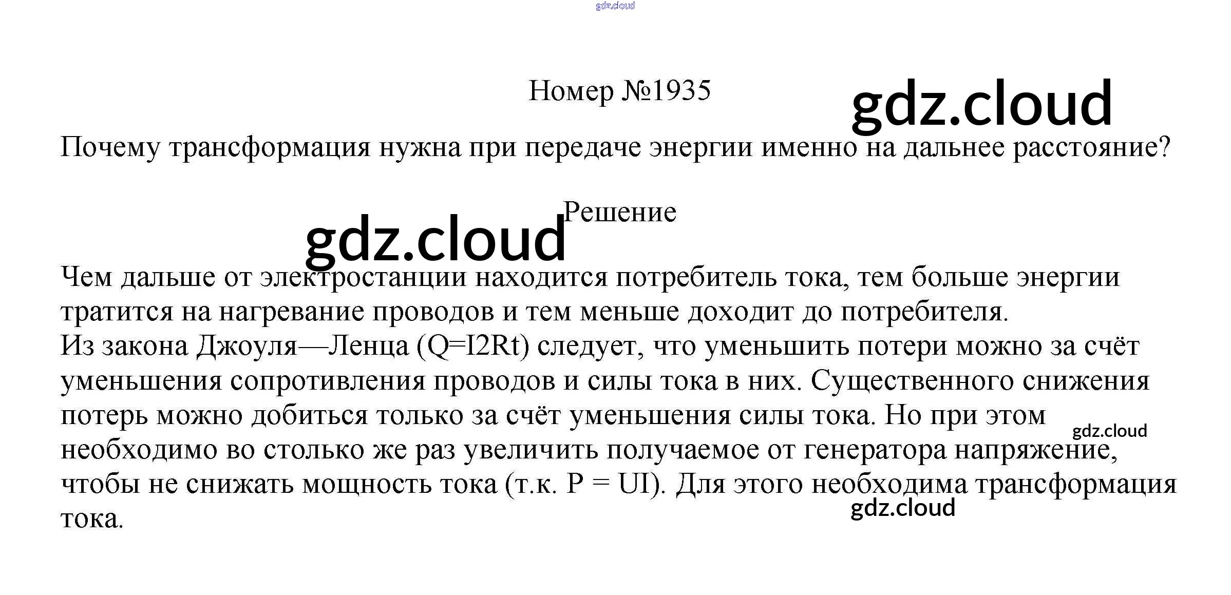 Ответ на задание 1935 Сборник вопросов и задач Физика за 7, 8, 9 (седьмой, восьмой, девятый) класс Марон, Позойский Вертикаль 2013