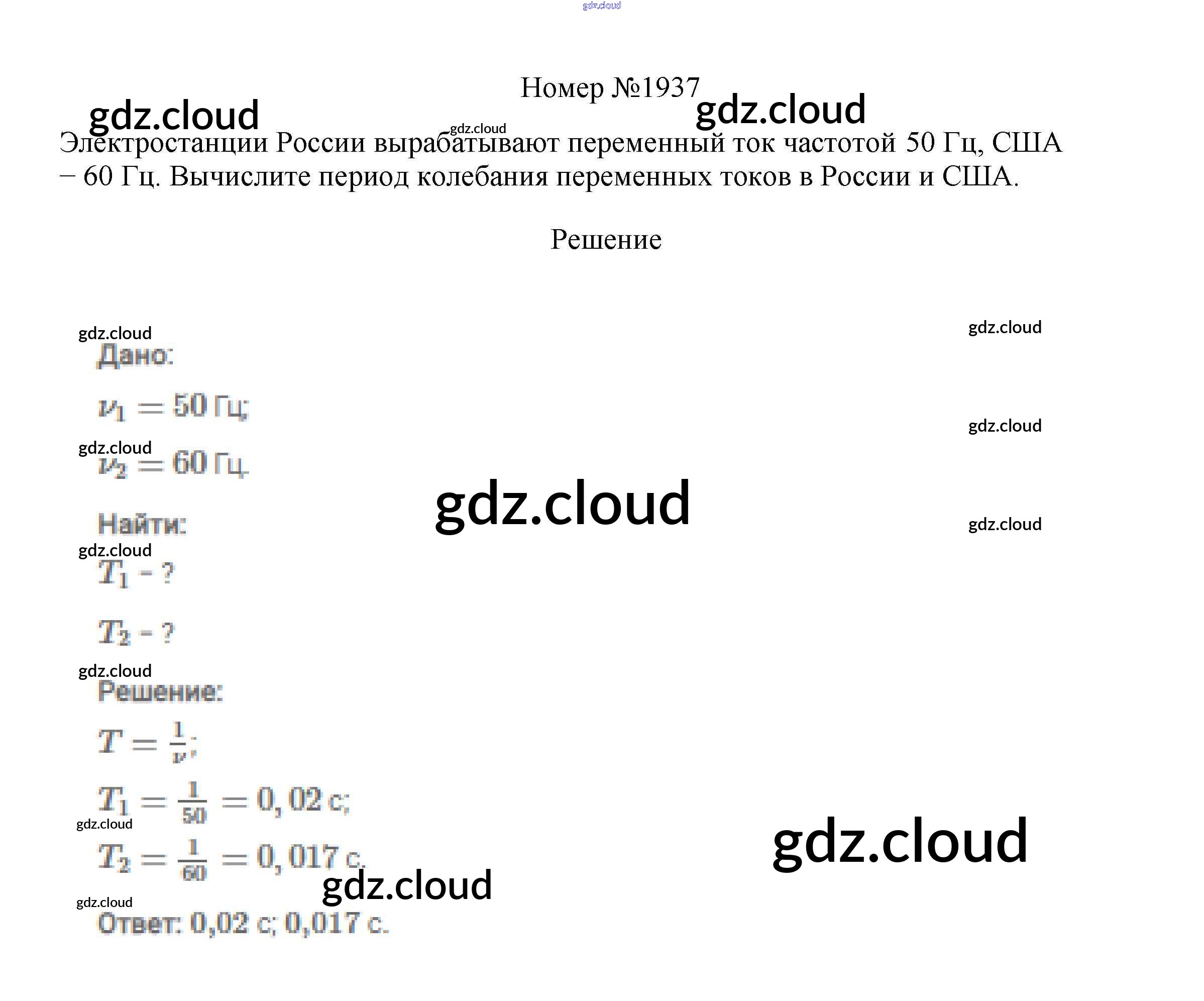 Ответ на задание 1937 Сборник вопросов и задач Физика за 7, 8, 9 (седьмой, восьмой, девятый) класс Марон, Позойский Вертикаль 2013