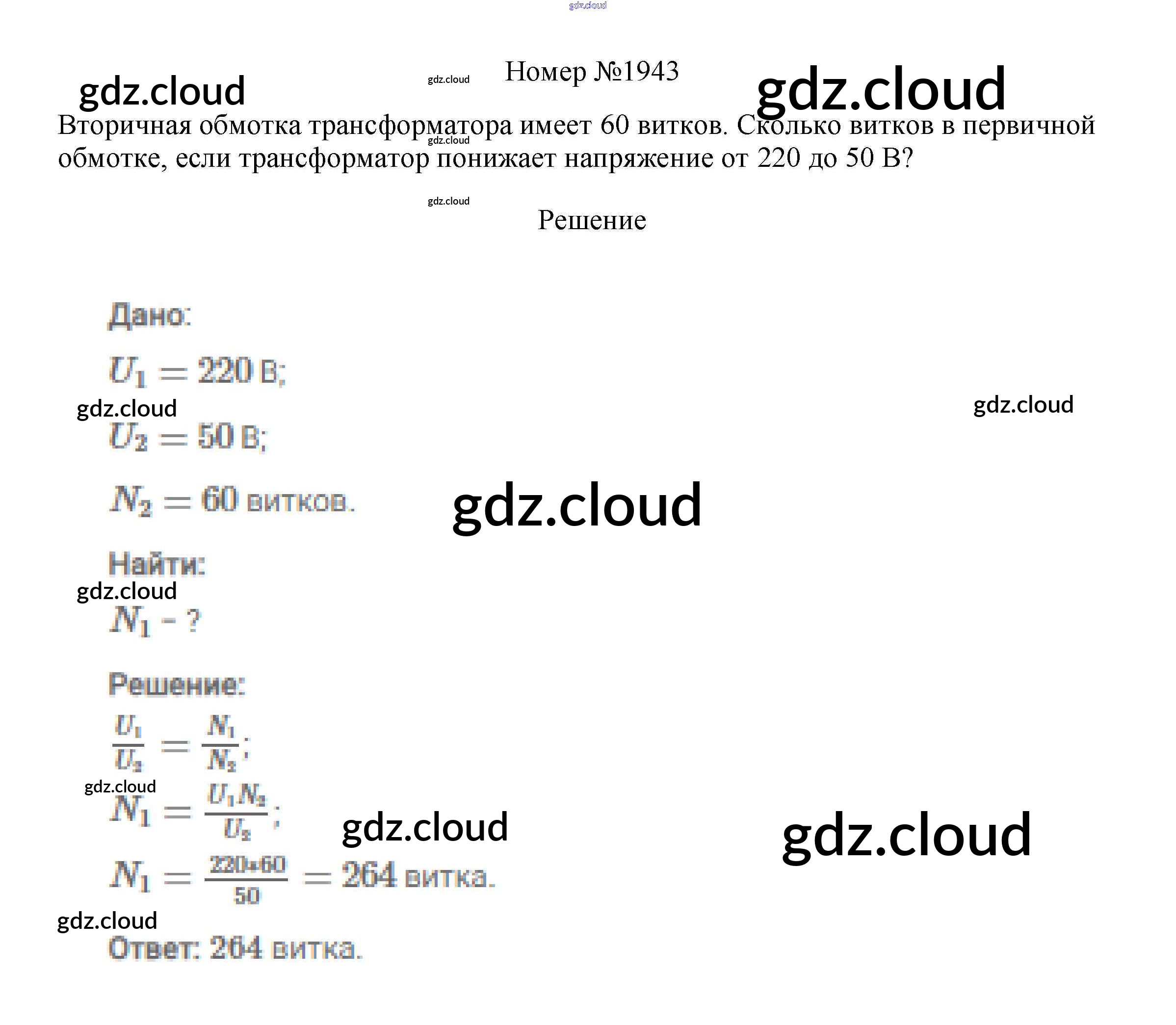 Ответ на задание 1943 Сборник вопросов и задач Физика за 7, 8, 9 (седьмой, восьмой, девятый) класс Марон, Позойский Вертикаль 2013
