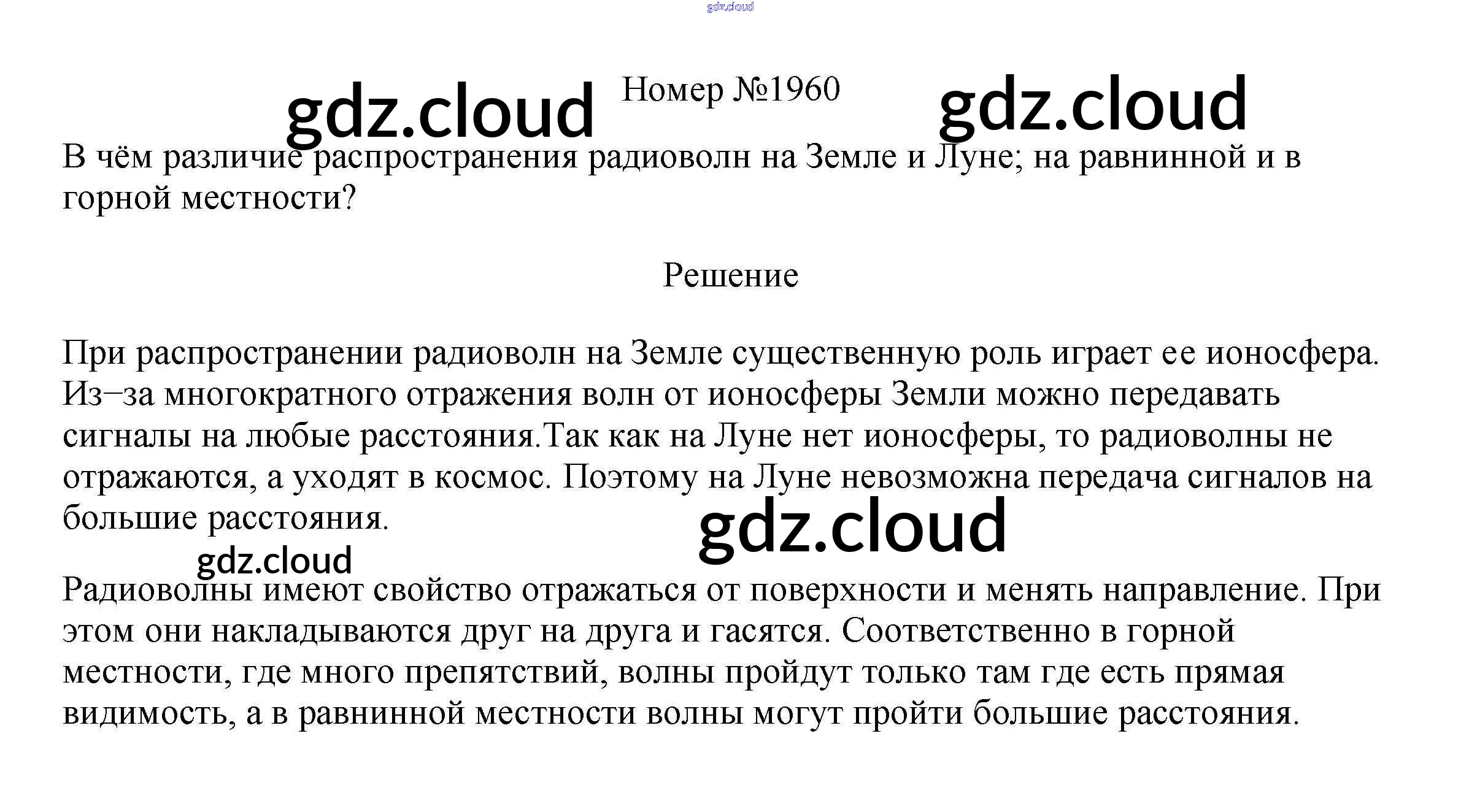 Ответ на задание 1960 Сборник вопросов и задач Физика за 7, 8, 9 (седьмой, восьмой, девятый) класс Марон, Позойский Вертикаль 2013