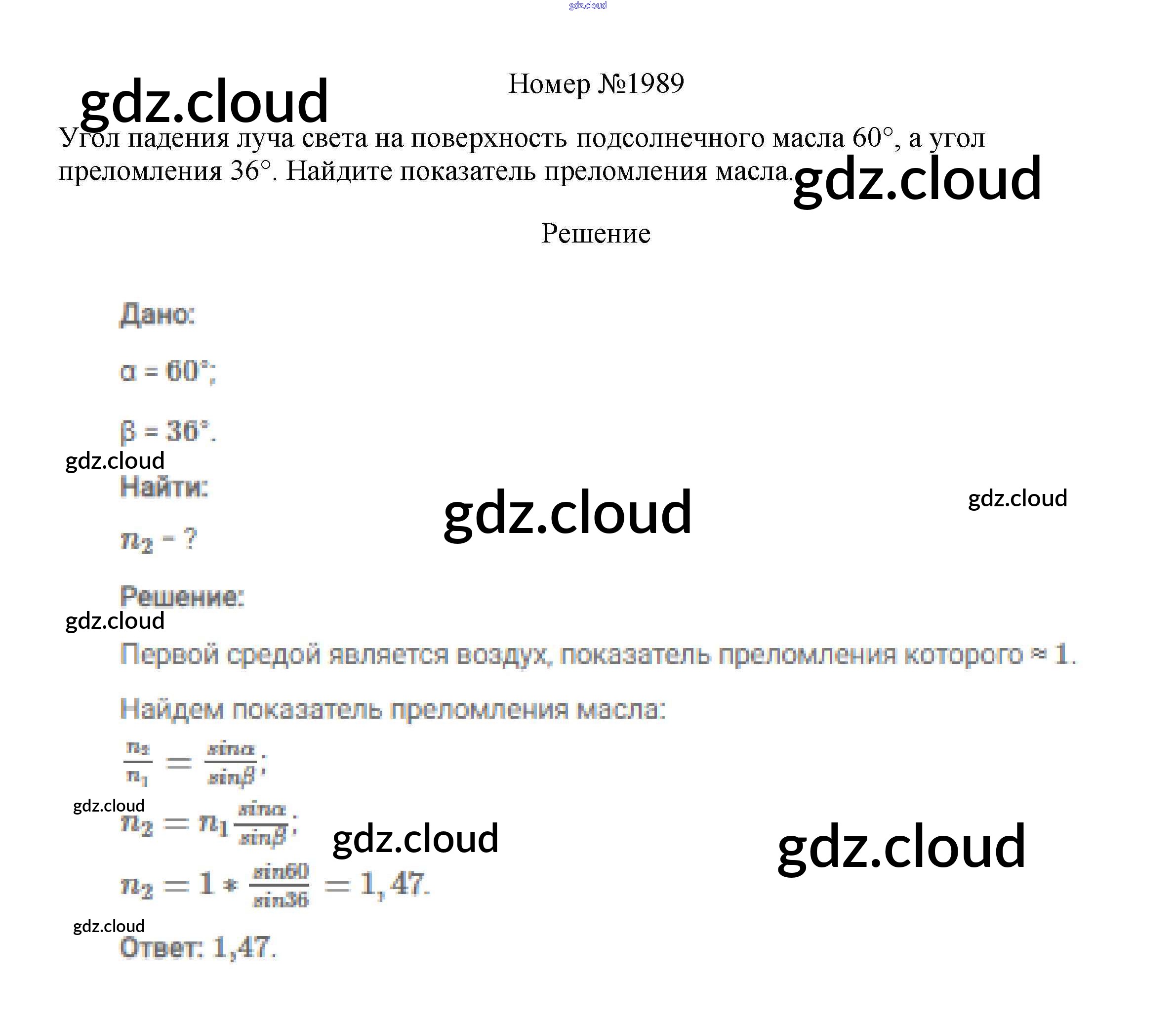 Ответ на задание 1989 Сборник вопросов и задач Физика за 7, 8, 9 (седьмой, восьмой, девятый) класс Марон, Позойский Вертикаль 2013
