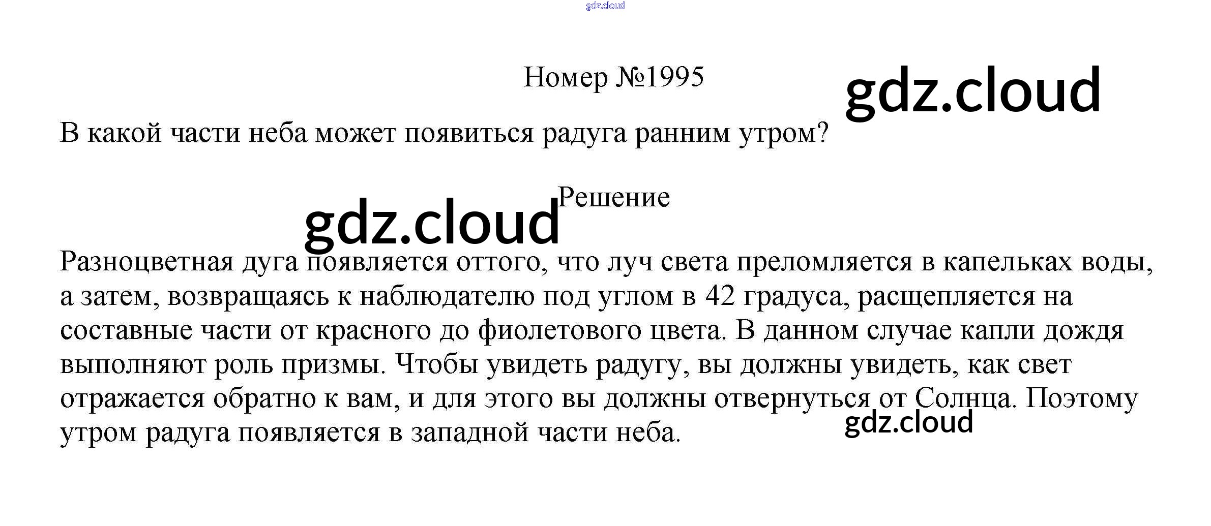 Ответ на задание 1995 Сборник вопросов и задач Физика за 7, 8, 9 (седьмой, восьмой, девятый) класс Марон, Позойский Вертикаль 2013