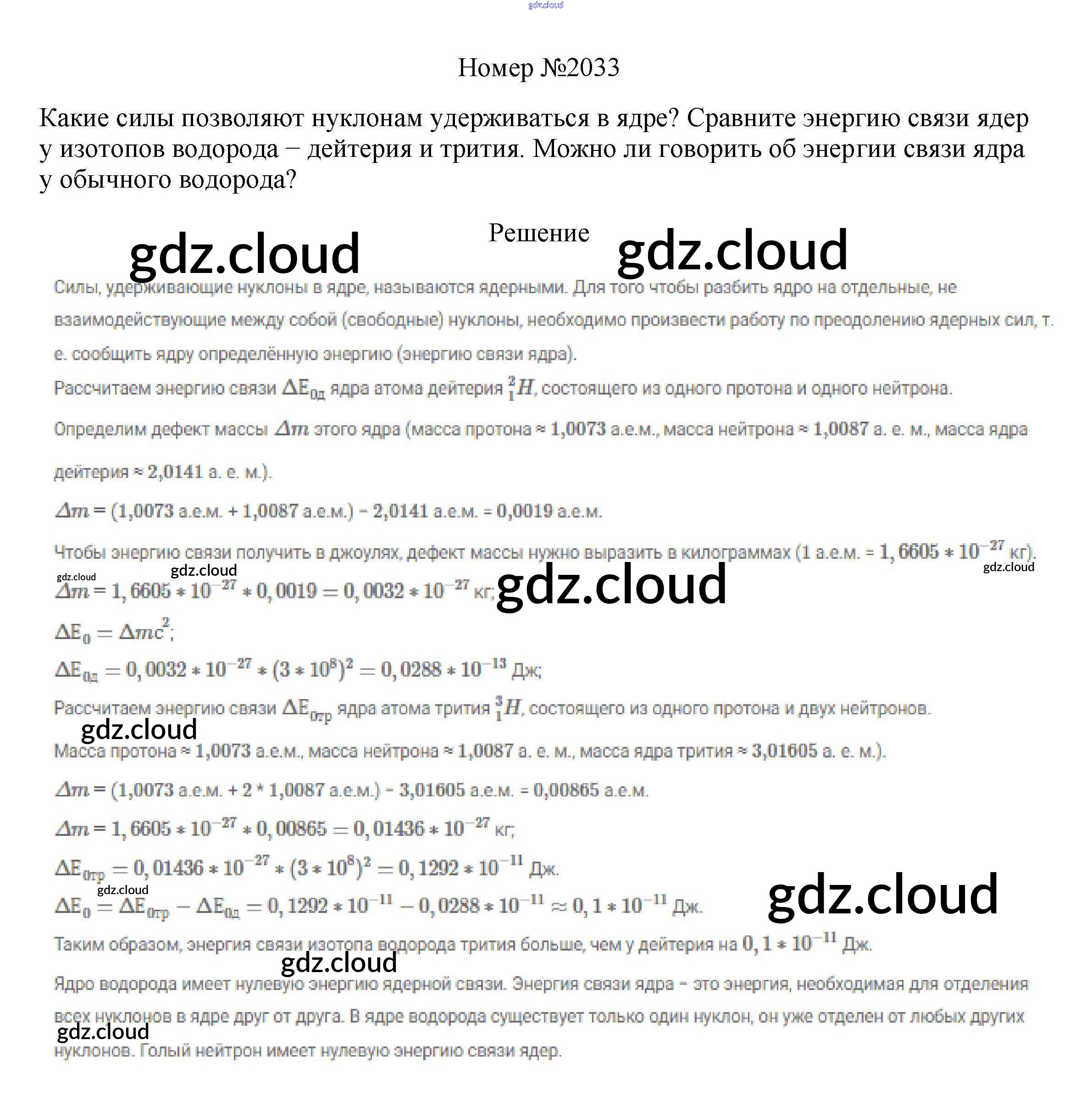Ответ на задание 2033 Сборник вопросов и задач Физика за 7, 8, 9 (седьмой, восьмой, девятый) класс Марон, Позойский Вертикаль 2013