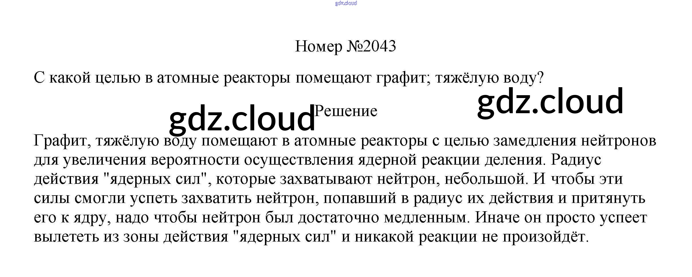 Ответ на задание 2043 Сборник вопросов и задач Физика за 7, 8, 9 (седьмой, восьмой, девятый) класс Марон, Позойский Вертикаль 2013