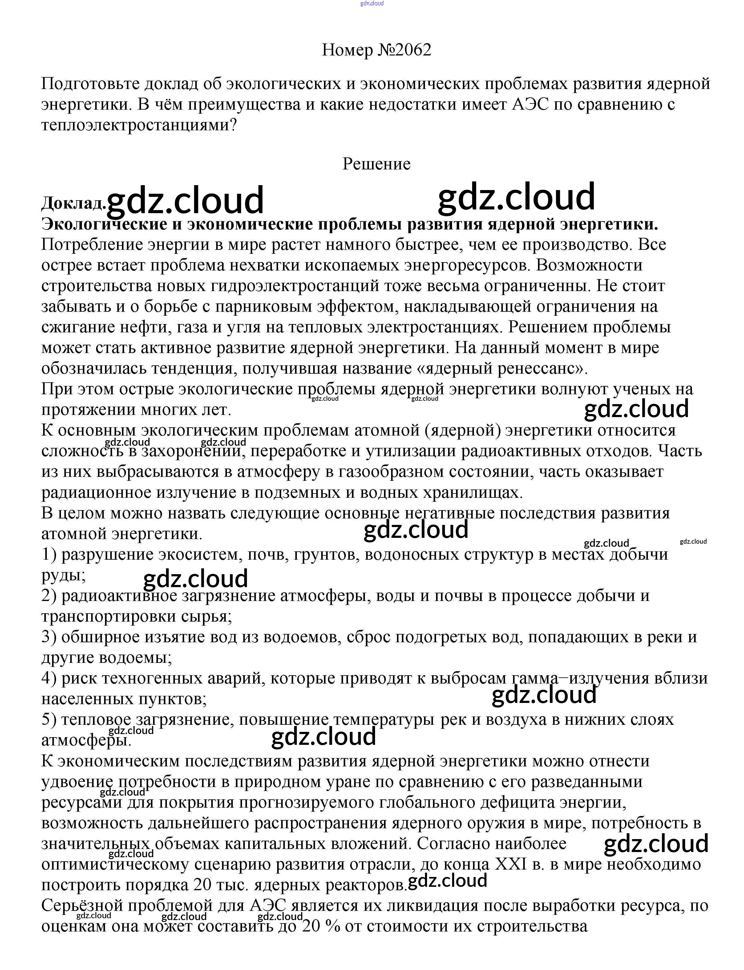 Ответ на задание 2062 Сборник вопросов и задач Физика за 7, 8, 9 (седьмой, восьмой, девятый) класс Марон, Позойский Вертикаль 2013