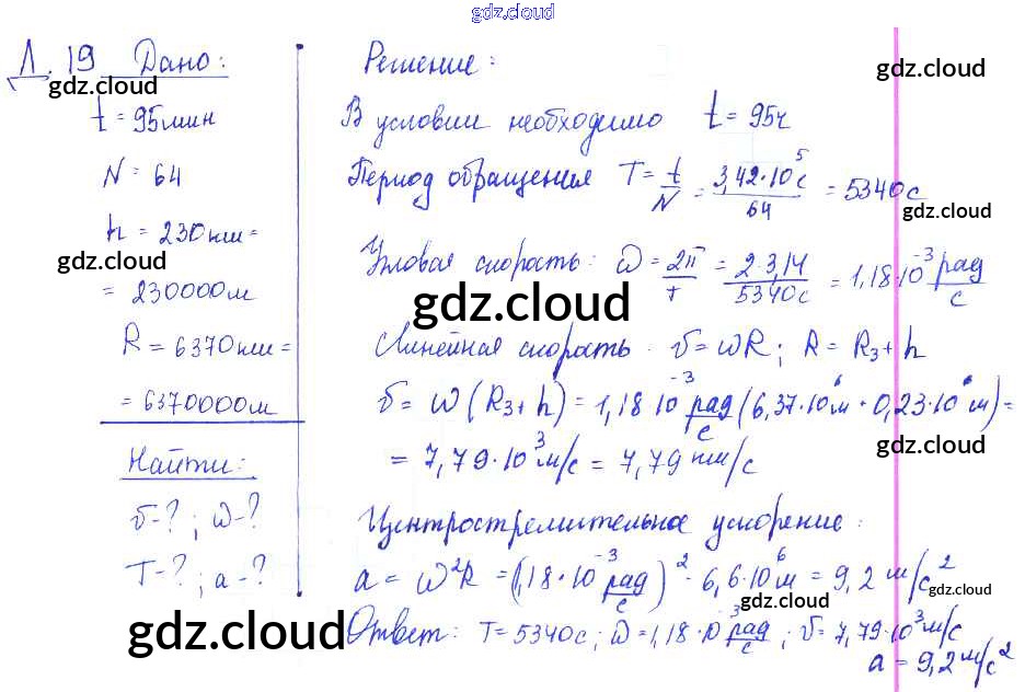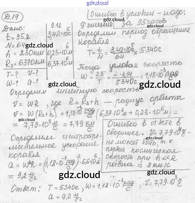 Ответ на задание 19 Сборник задач Физика за 7, 8, 9 (седьмой, восьмой, девятый) класс Лукашик, Иванова 2011