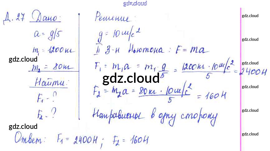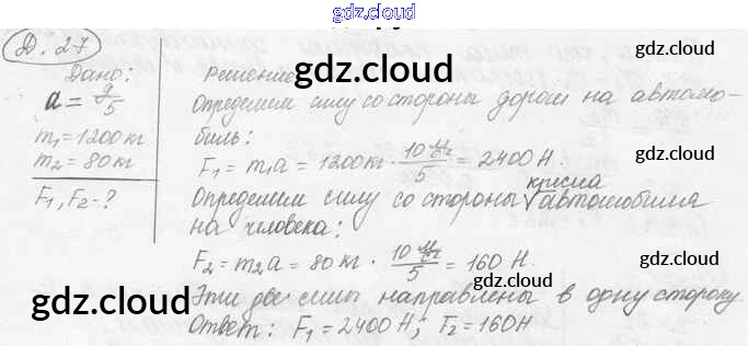 Ответ на задание 27 Сборник задач Физика за 7, 8, 9 (седьмой, восьмой, девятый) класс Лукашик, Иванова 2011