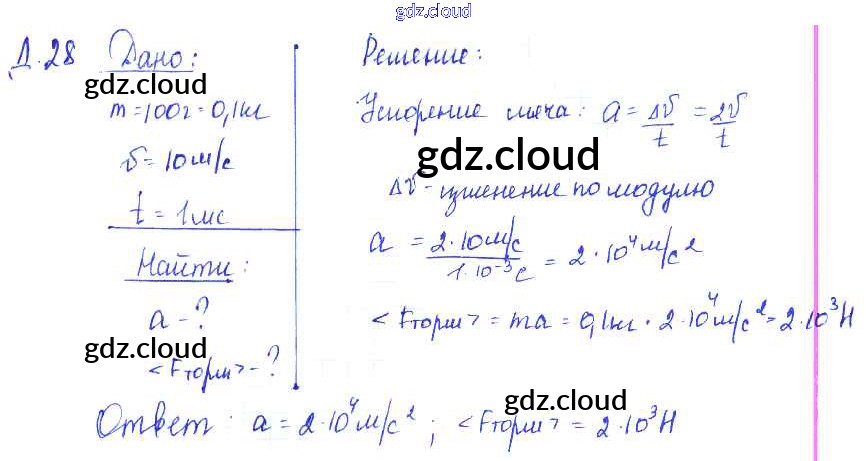 Ответ на задание 28 Сборник задач Физика за 7, 8, 9 (седьмой, восьмой, девятый) класс Лукашик, Иванова 2011